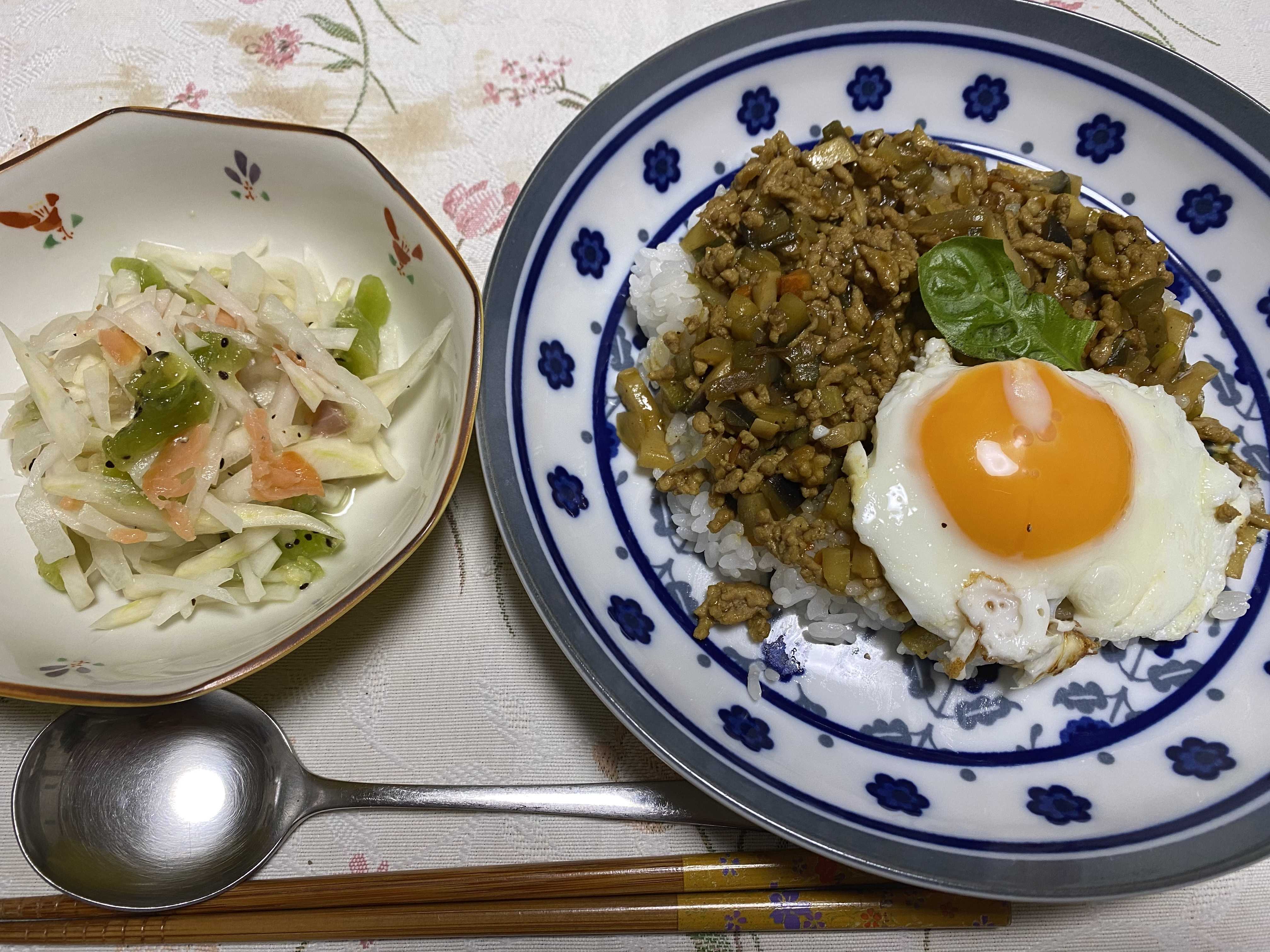 キーマカレーに目玉焼き。美味しい。挽肉料理では、麻婆豆腐とキーマカレーがニ代表。野菜は、ナス、玉ねぎ、人参、エリンギなどを微塵に。①生姜、ニンニクも微塵切りにして、挽肉を炒める。②野菜を炒め、水分が出たら赤缶のカレー粉を混ぜる。③水を入れ、コンソメ、ソース、ケチャップ、醤油で、 味を整え、物足りない時は、カレールーを一個足す。フライパン一つで作れるし、翌日も食べれるし、月一で作るお気に入り料理です。大根サラダは、甘酢和え。スモークサーモンとキーウイフルーツと一緒に。彩りが綺麗で、楽しい。前橋市市長選の一日前ですが、期日前投票に行ってきました。 花ブログランキングに参加しています。 応援のクリックをよろしくお願いします。 昨日のアクセス数 1626 昨日のランキング順 5 位