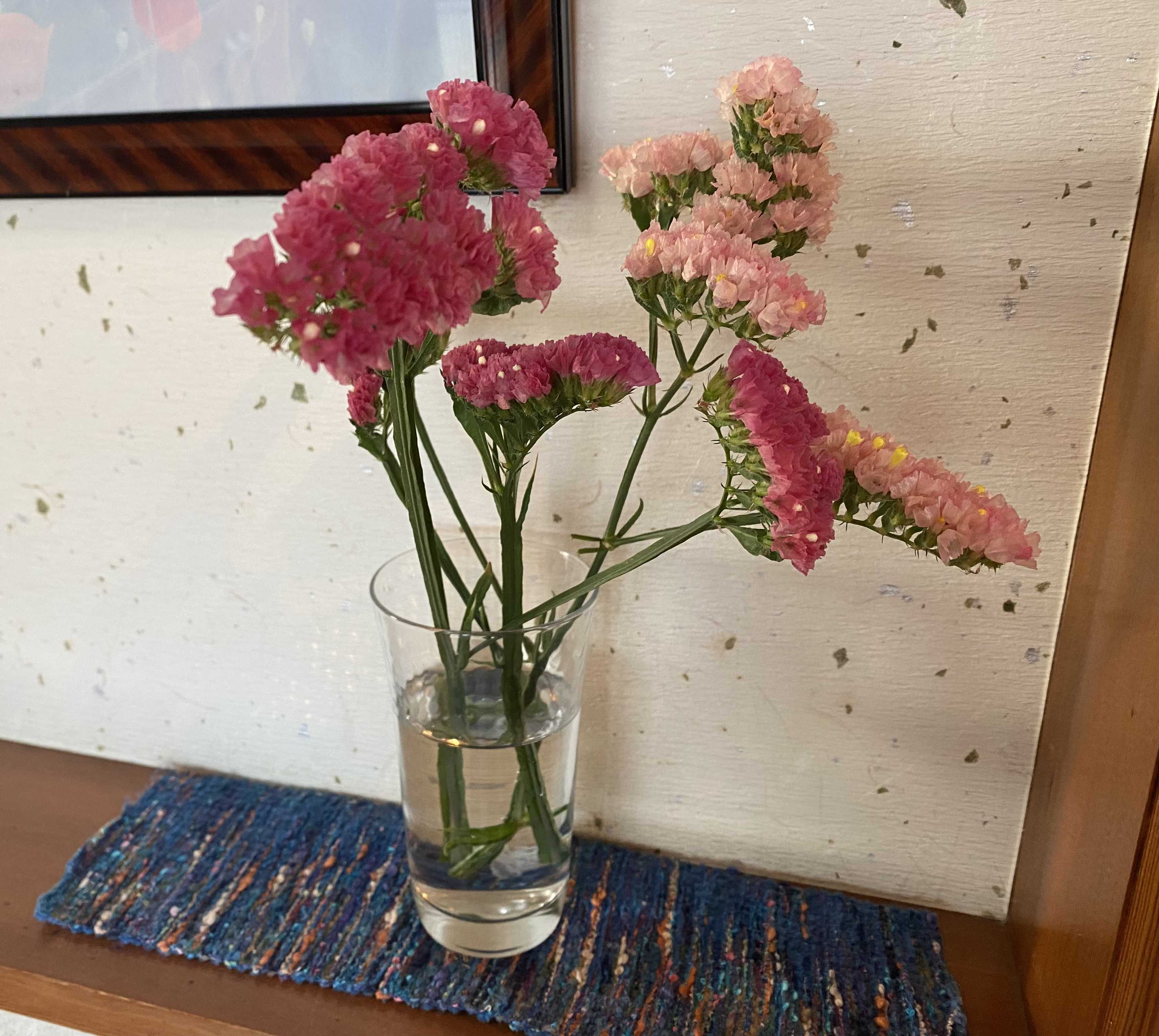 先日、桜を頂いたNさんが、お茶飲みに来ました。今日は、スターチスを頂きました。濃いピンクと薄いピンク色、なんて可愛い!お茶菓子もミカンも、持参してくれました。(笑)陽が差し込む暖かな部屋で、おしゃべり三昧。小鳥たちが、水場に水を飲みに来るのが、部屋から観察出来るので、可愛い、と大喜びです。雀、色の綺麗なジョウビタキ、メジロ、ムクドリと、次々に登場しては、Nさんを喜ばせます。リースをぶら下げて1週間経つのに、ピーナッツ好きのシジュウカラが、全く来ないのよ、と話していたちょうどその時、来ました!白いほっぺに黒ネクタイ、シジュウカラです。なんて偶然。嬉しいな。パッと、飛び移り、リースへの始めてのお客さま。器用に、逆さまに止まり、穴から実を突いています。部屋の中からの動きだけで、気配を察するので、座った場所からのスマホ撮影なので、この程度。これで大丈夫、この子が仲間に、ピーナッツあるよ、と、情報を伝えてくれることでしょう。鳥好きのNさんは、この光景に大喜びしています。それにしても、あの大空高くから、リースがピーナッツで、中に、実が入っている、と、どうして分かるのだろうね、と不思議がります。ホントねー、不思議です。午後は、「ノラジジ」へランチに出かけます。 花ブログランキングに参加しています。 応援のクリックをよろしくお願いします。 昨日のアクセス数 1980 昨日のランキング順 5 位