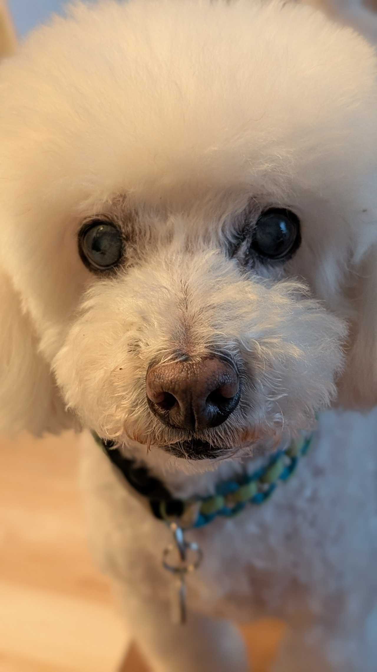 やっと、トリミングへいきました! 仕上げにお花をつけてもらって、、 おじいちゃん…