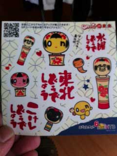 4月22日。オヤスミでした。カミさんのリクエストでH&Mというお店に行ってきました。初めて行ったよ。中々の安さで驚いちゃった...俺の行きつけ「ブティックしまむら:爆」もビックリだぜママが買い物してる間、娘ちゃんと二人で遊んでました。(≧∇≦)ぶぁっはっはっ!!街中をブラブラそういえば...杜の都じゃぁ、そこそこ名前の売れてる「ひょうたん揚げ」ってあるんだけどね嵐の相葉ちゃんだっけ?こっそり売り子してたらしいよ(by姫情報)それをね俺今まで食べた事なかったんだよね...たぶん記憶ないから...食べた事ないはず(笑)丁度交差点赤になったから1本買って、シェアするべって事で買いました。ひょうたん揚げってなんつーの?アメリカンドックのソーセージ抜きみたいなね...そんな感じ(笑)あれ何か中に入ってんだべか?売り場のガラスに貼紙発見。串に「アタリ」が書いてあったらもう1本ビバ・オールみたいだな...これは地元で更に30代後半以上しか解らないネタかホームランバーみたいなシステムモグモグ食ってたら串にビシッと「アタリ」の文字おぉ(゚ロ゚屮)屮ビギナーズラック...こんな所で運を使っちまうとは...横断歩道渡ればみずほ銀行の宝くじ売り場あるのに...(≧∇≦)ぶぁっはっはっ!!結局、1本ずつ食べた計算ごちそう様でした。テクテク街中をお散歩。気が付きゃ娘ちゃんは夢の中。パパとママはデパートの中。『北海道物産展』の文字に吸い寄せられてしまいました。美味しいものはもちろん、中ではHTBのグッツが山盛り。ゥォオオオ(゚ロ゚屮)屮久しぶりにどうバカの心が目を覚ましたよ(笑)あれやこれとグッツを買い込んだらこんな限定ステッカーもらったよ。チョット人が多かったのでベビーカーじゃ迷惑になりそうだったから交代でぐるりしてきたの試食だけでお腹満たされそうだった(笑)道が混む前に帰ろうという事で後は真っすぐお家へ帰りました。