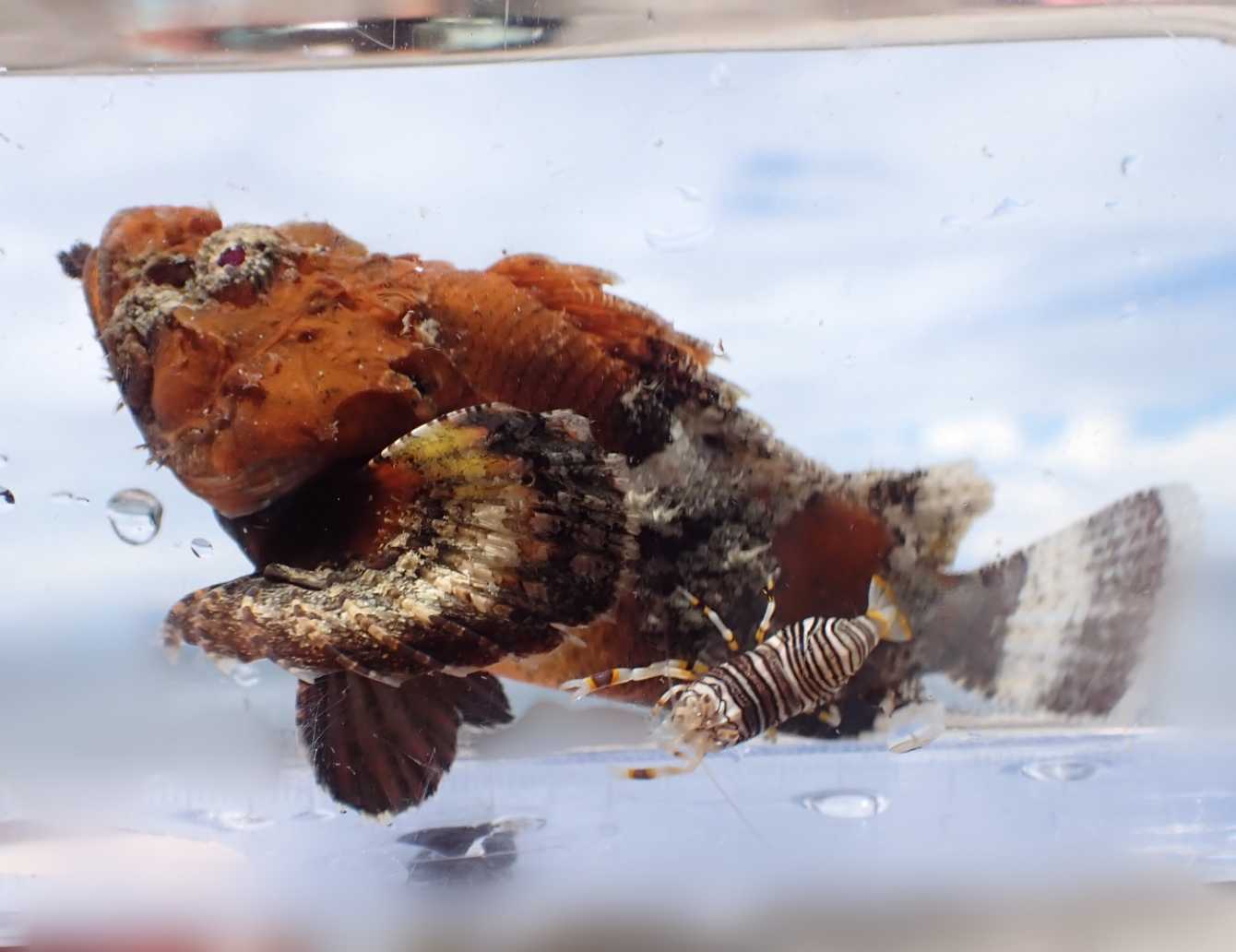 ミノカサゴは転覆しやすいという話を聞いていたので、バケツに移した時少しぐったりして尾鰭を上げていたのは焦ったが、すぐに復活してくれて一安心。