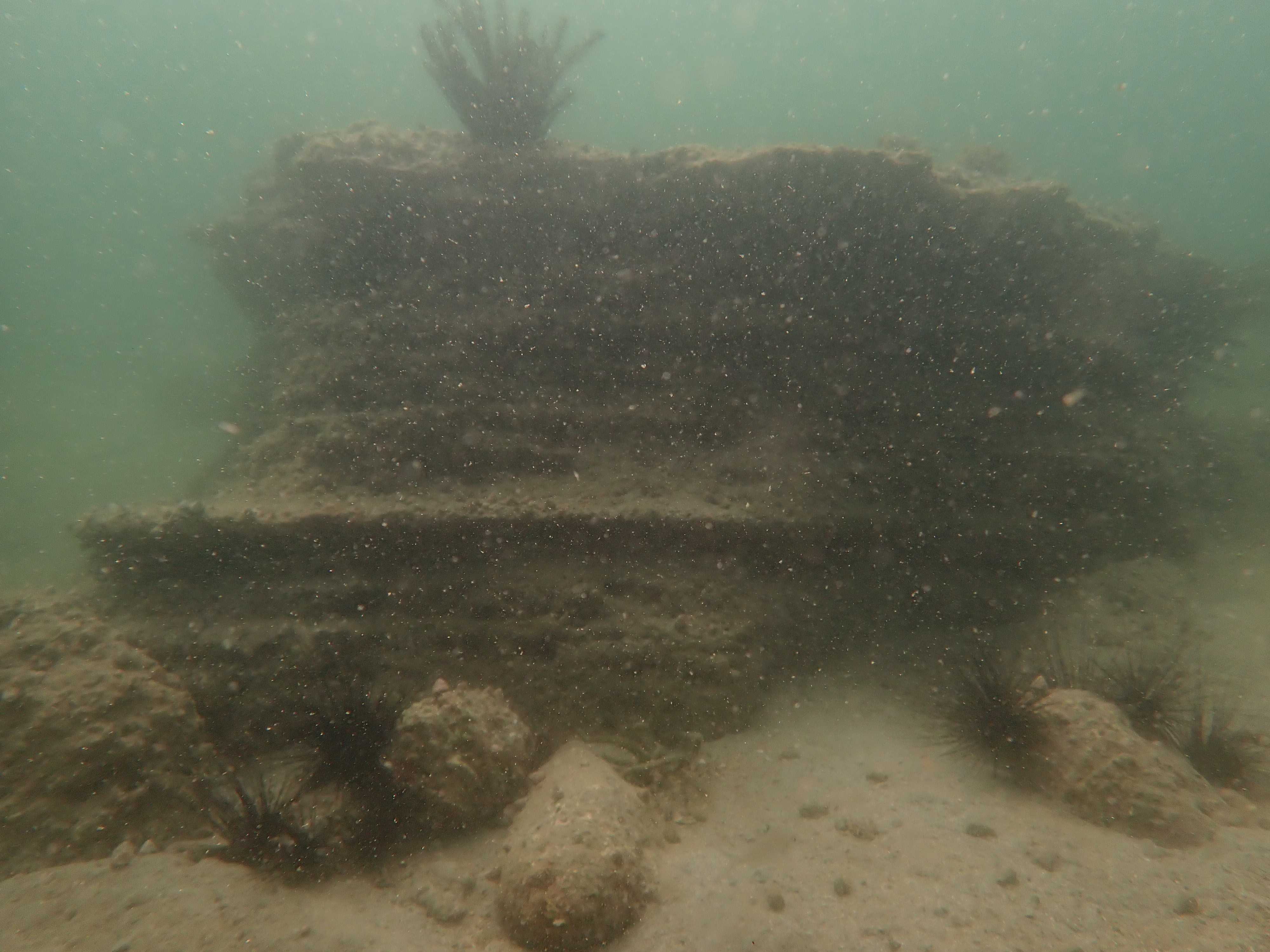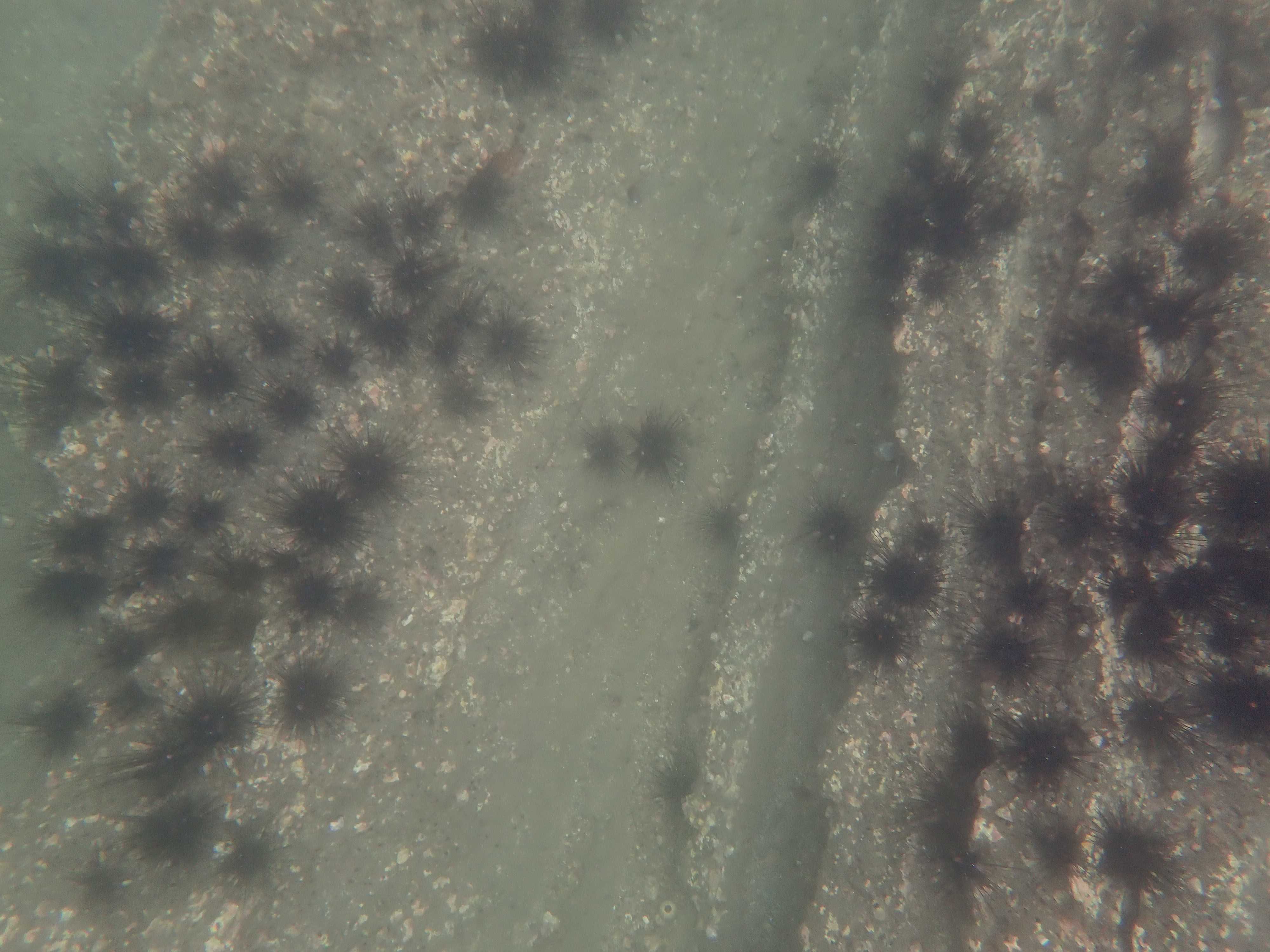 ここはガンガゼ天国。いや、地獄か(黒い部分は全てガンガゼ)。岩の表面に堂々と乗っかっている上に針山の如く大群をなしている。手をつく場所、膝をつく場所、岩の下を覗く時の頭の位置…何もかも警戒を怠ってはいけない。尋常ではない数。こっっっわ。