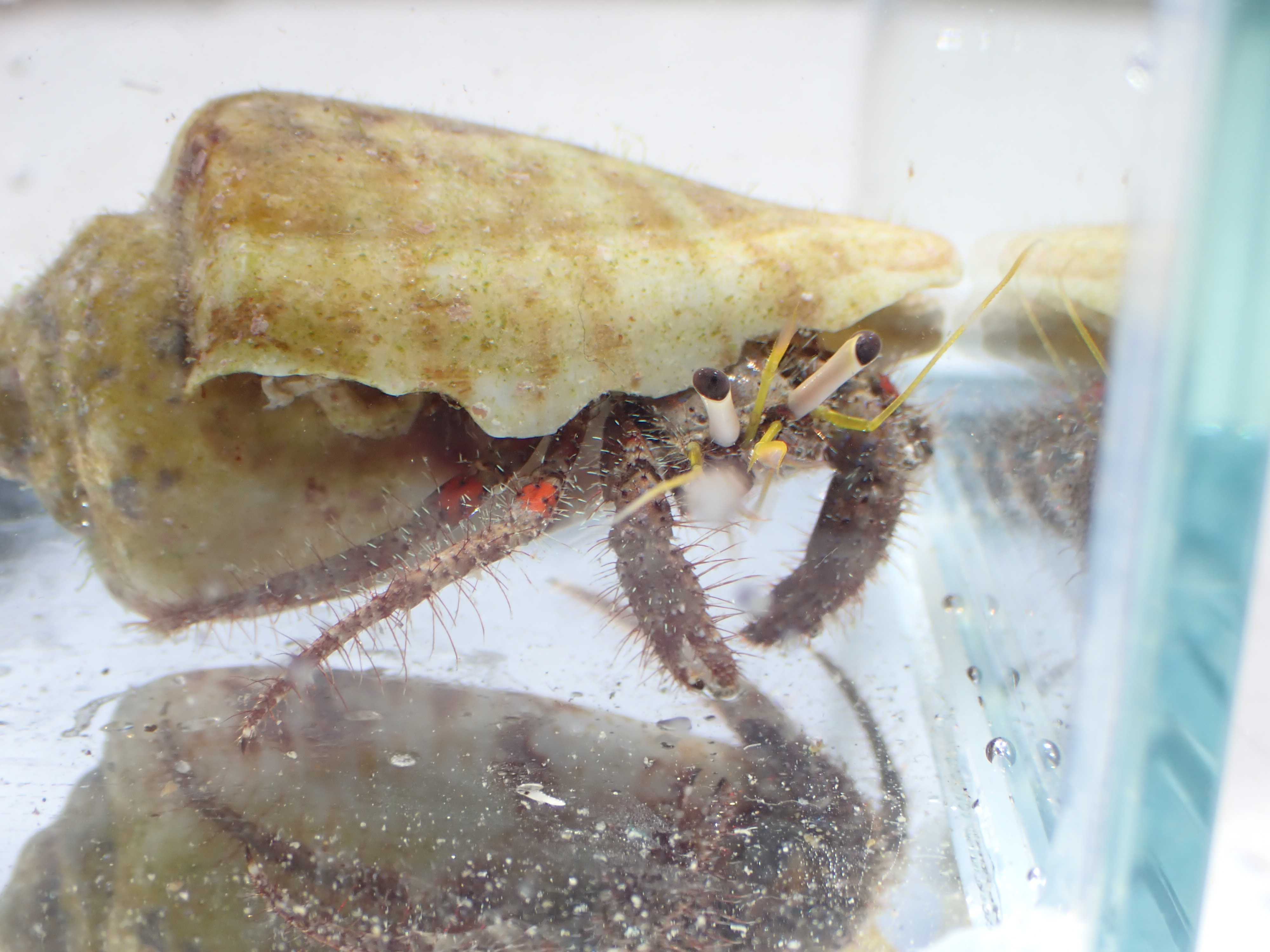 オイランヤドカリから分かれた…なんて種類だっけ。確か和名は付いていないんだったか。オイラン系のヤドカリも出会ったことがないんだよな…これもそのうち探したい。関節にサポーターみたいな模様があって面白い。