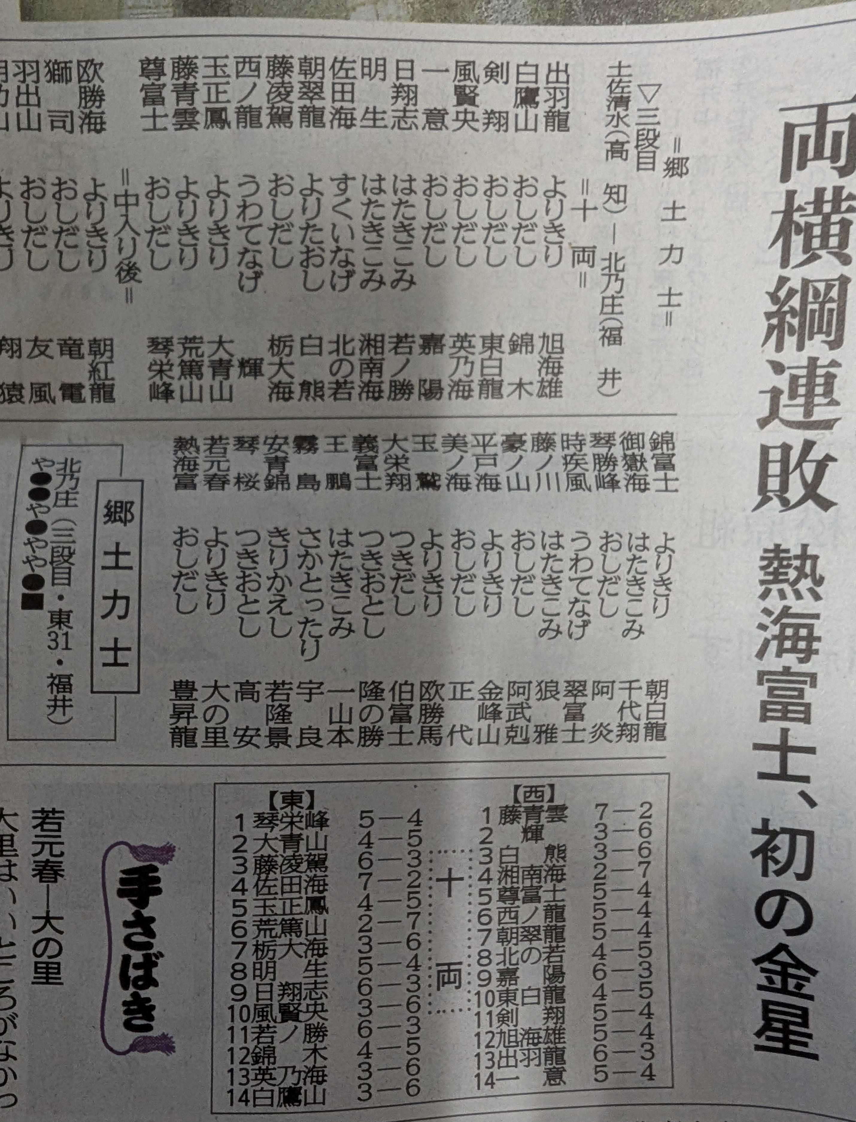 ぁ〜〜あ〜😱横綱豊昇龍と大の里に勝った義ノ富士2日連続して横綱に勝った力士〜さすが大学横綱出身ですね〜しかしなあ〜横綱どうしちゃったのだろうか?左肩は完治していないのか?この先の場所が気になりますね🥺大相撲初場所は荒れに荒れてますわ〜😱ドスコイ〜👊そんな昨日もお天気は不安定で雪になったり、雨になったり…又館内で歩くしかない〜🚶😄とにかく午前中は歩いて歩数を稼ぎ、午後からはいつもの英会話のレッスン、プチ稼ぎをする腰痛体操も毎日の日課となったなかなかいい感じで腰もかなり落ち着いてきたここで湿布も止めてみようと夜は貼らずに寝た大丈夫そうかなあ〜腰もだけど…日経平均株価↓とうとう5万4000円代になるが、これどうなの?日銀の植田総裁が利上げの方針を強調金の価格も初の2万6000円を超えるいったいどうなっていくんだろうか?いつも有難う御座います報恩感謝