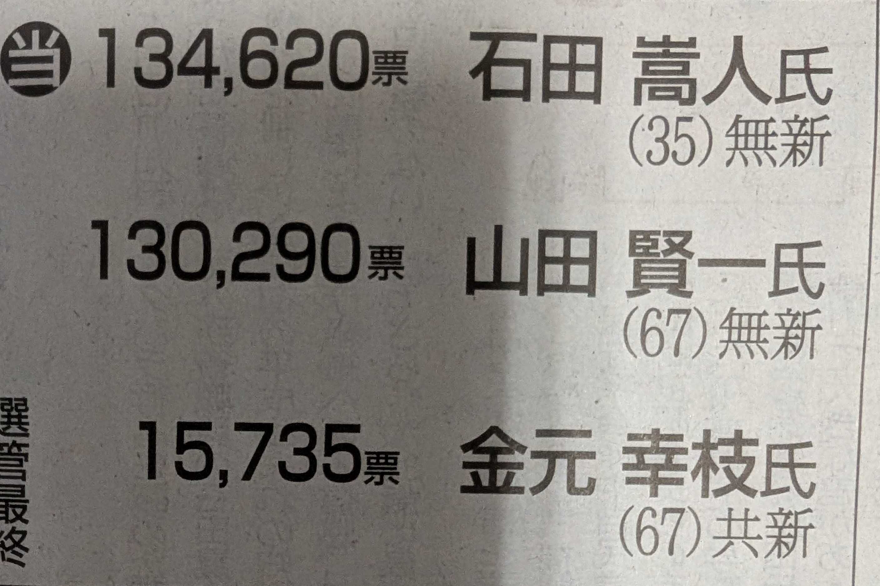 毎日朝起きると必ず窓越しから雪の様子を見るが、月曜日の朝、積もっていなかったホッとした私😅💦2階ぐらいまで山積みに積み上がった雪を何とか今日は運ばないといけない〜😰それはそれで大変です〜😰まだ今月は雪が降るようで、今のうちにやらないと…🥲そんな今日は福井県知事の一報を聞いた越前市長をわざわざ止めて立候補した山田氏は、過去に福井市副知事を経験したと記憶しているが、もう一人元外務省職員の石田氏の一騎打ちだったが、若き石田氏が当選した票はどうなったかというと…↓雪の影響もあったのか?それとも世代交代なのか?自民党本部と自民県連との割れた結果がこうなので、福井市は変わるのかなあ〜私はもしかしたら石田氏が当選するのかなと思っていたらやはりそうなった若き石田氏は何処まで出来るのかお手並み拝見です。昨日除雪した後に食べた干し芋↓甘くて美味しかった〜大相撲の情報有難う御座いました安青錦優勝したのですねおめでとう🎉安青錦!いつも有難う御座います報恩感謝