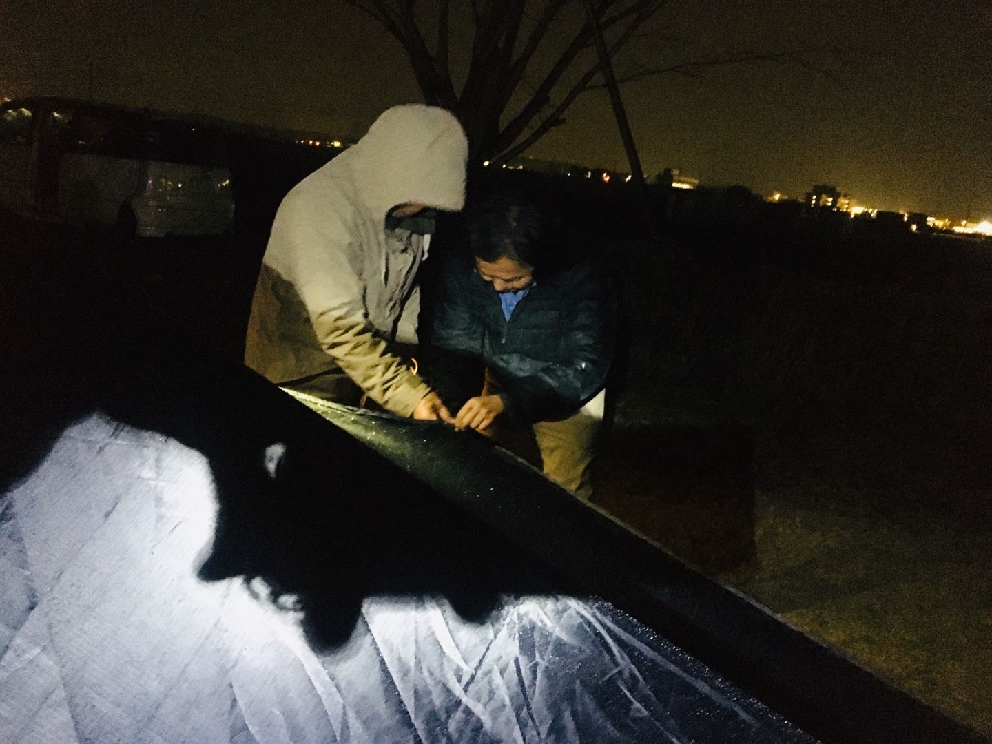 7時過ぎにもう1人の友人が仕事終わって合流。雨も降っていたのでみんなで協力してテント設置
