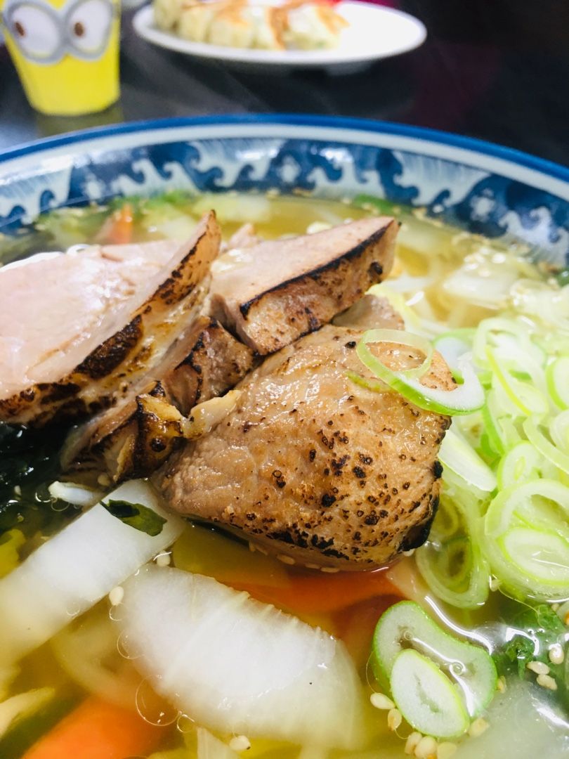 私は塩野菜ラーメンと餃子 ヤッパここの塩野菜ラーメン美味えなぁチャーシュー最高
