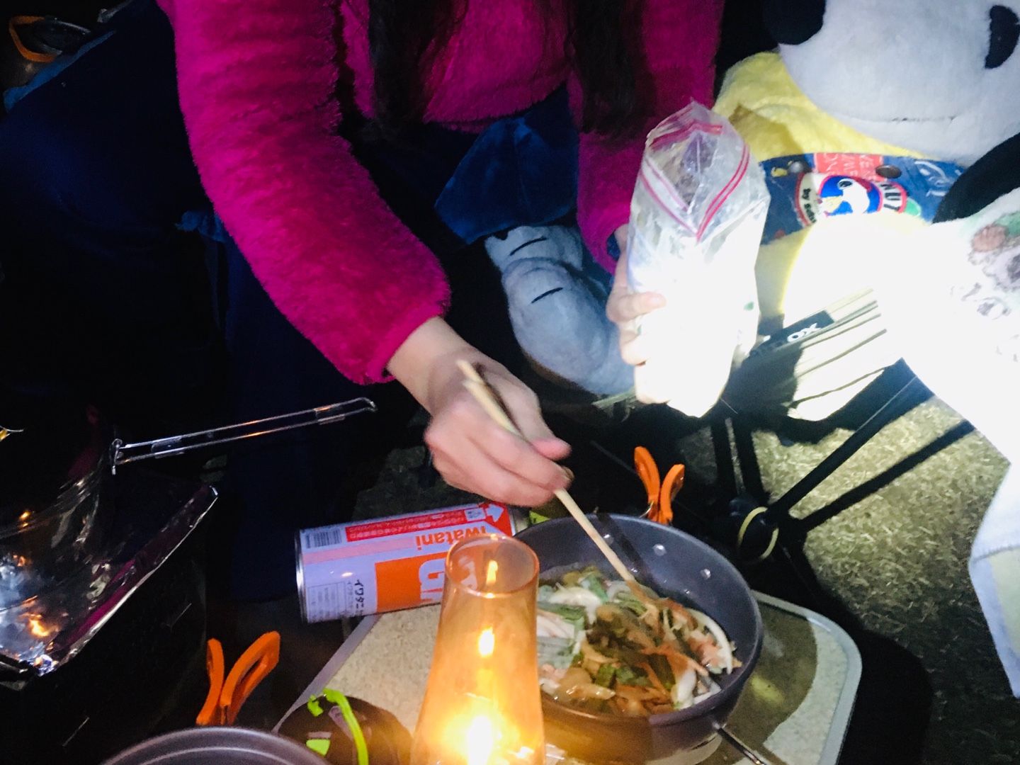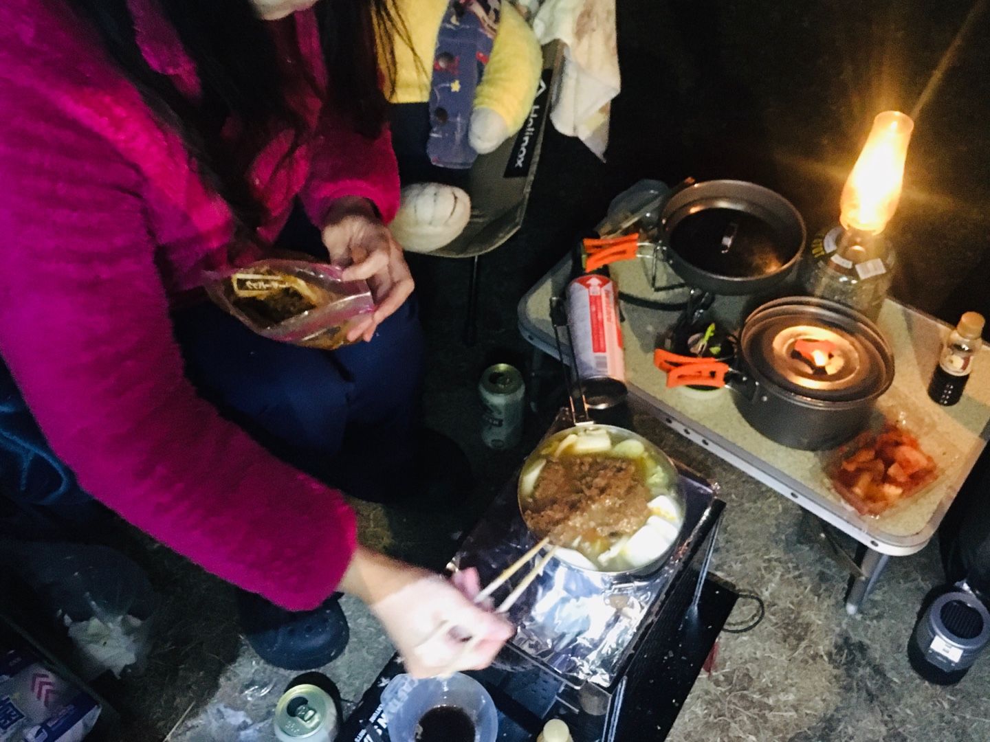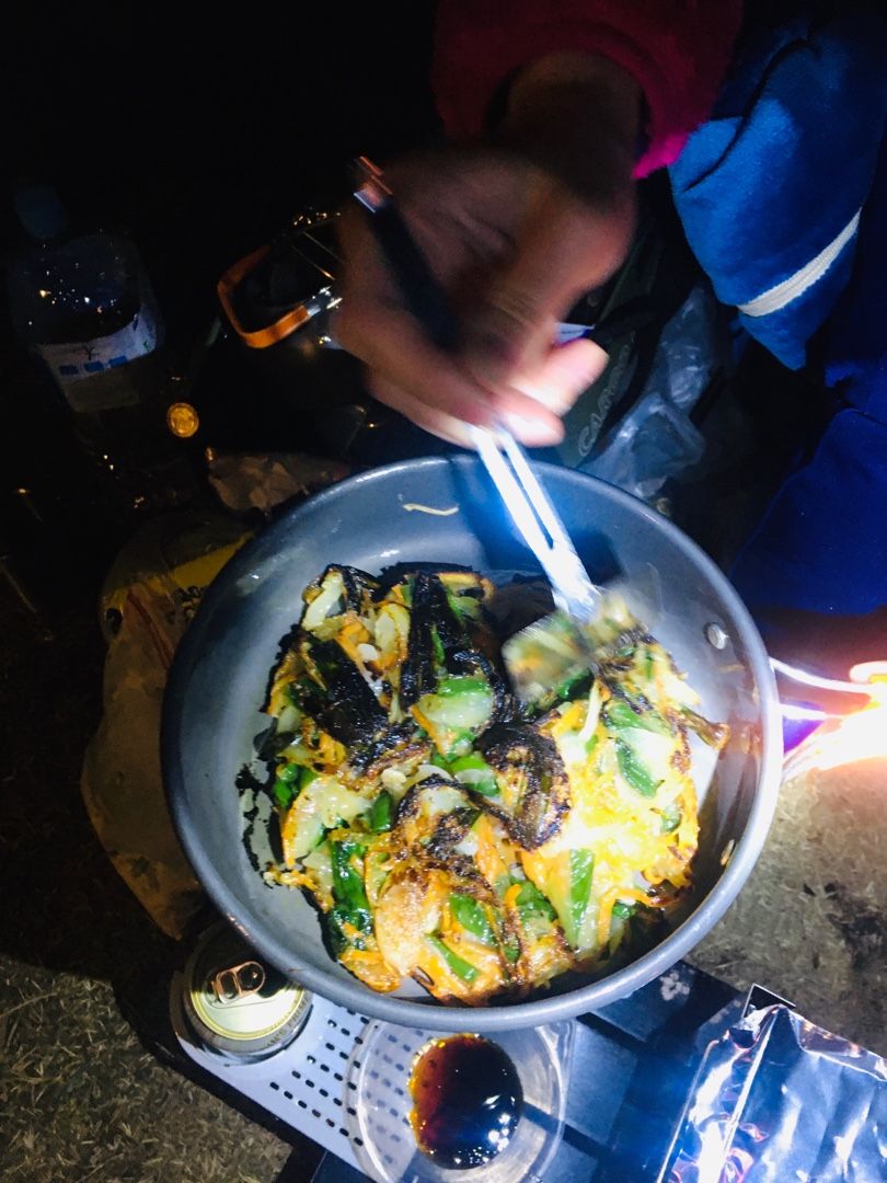 そして今日の宴会キャンプ飯👍どれも美味かった😋チヂミはちょっと残念だったけどね😄