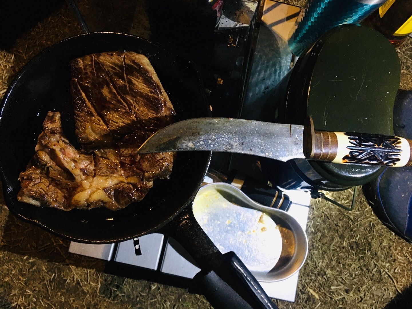 急いで温泉入って戻って速攻ステーキ焼いてました❗️