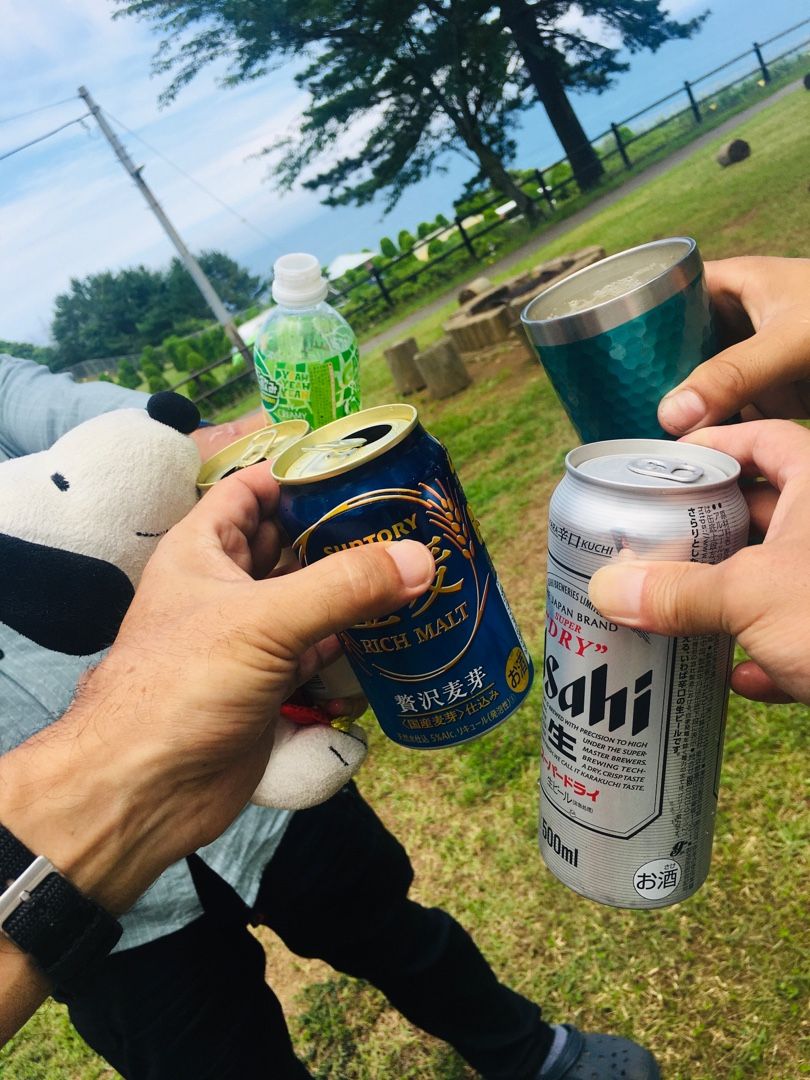 夕方もう1人の友人が合流し温泉から上がって夜の部の乾杯🍻