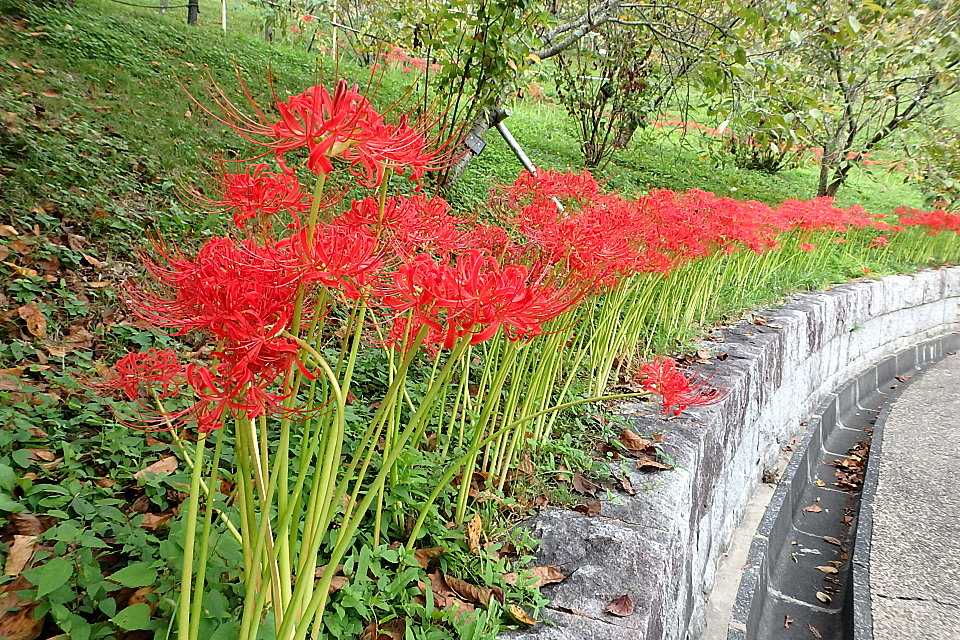 彼岸花・白花曼珠沙華・鍾馗水仙揃い踏み、擬宝珠、オオシロカラカサ…