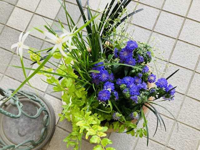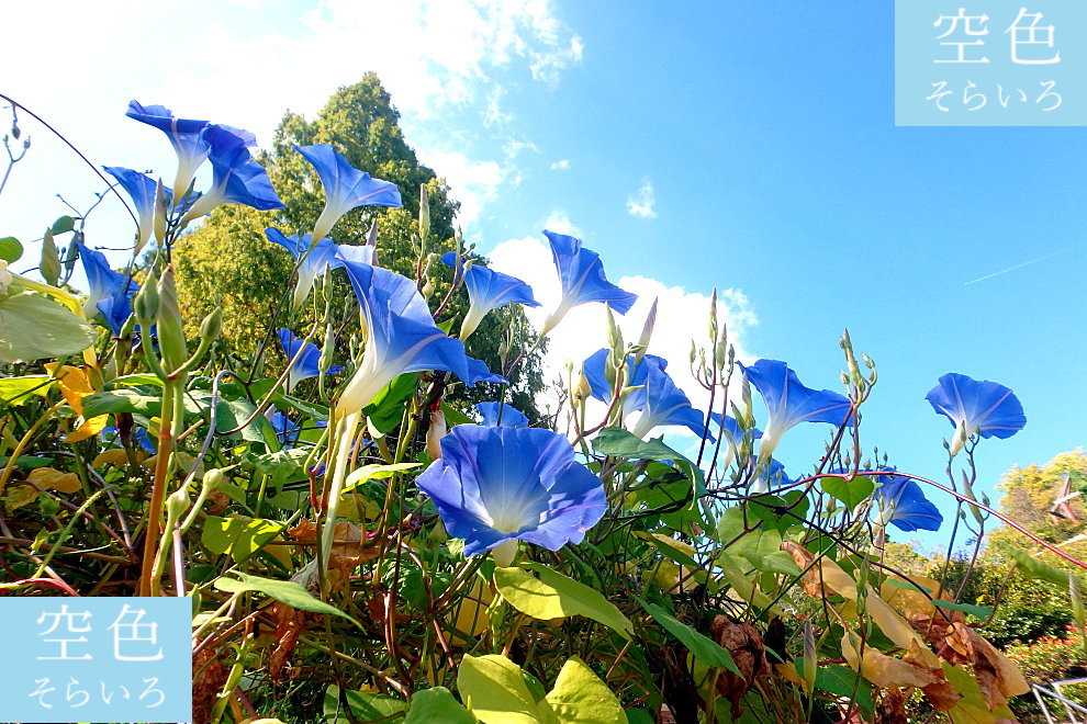 空色朝顔と空の色を比較、カリガネソウ、スズムシバナ、トレニアたち…