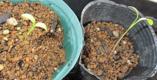 発芽後の苗をどんどん植え替え こぼれダネ発芽もあちこち確認