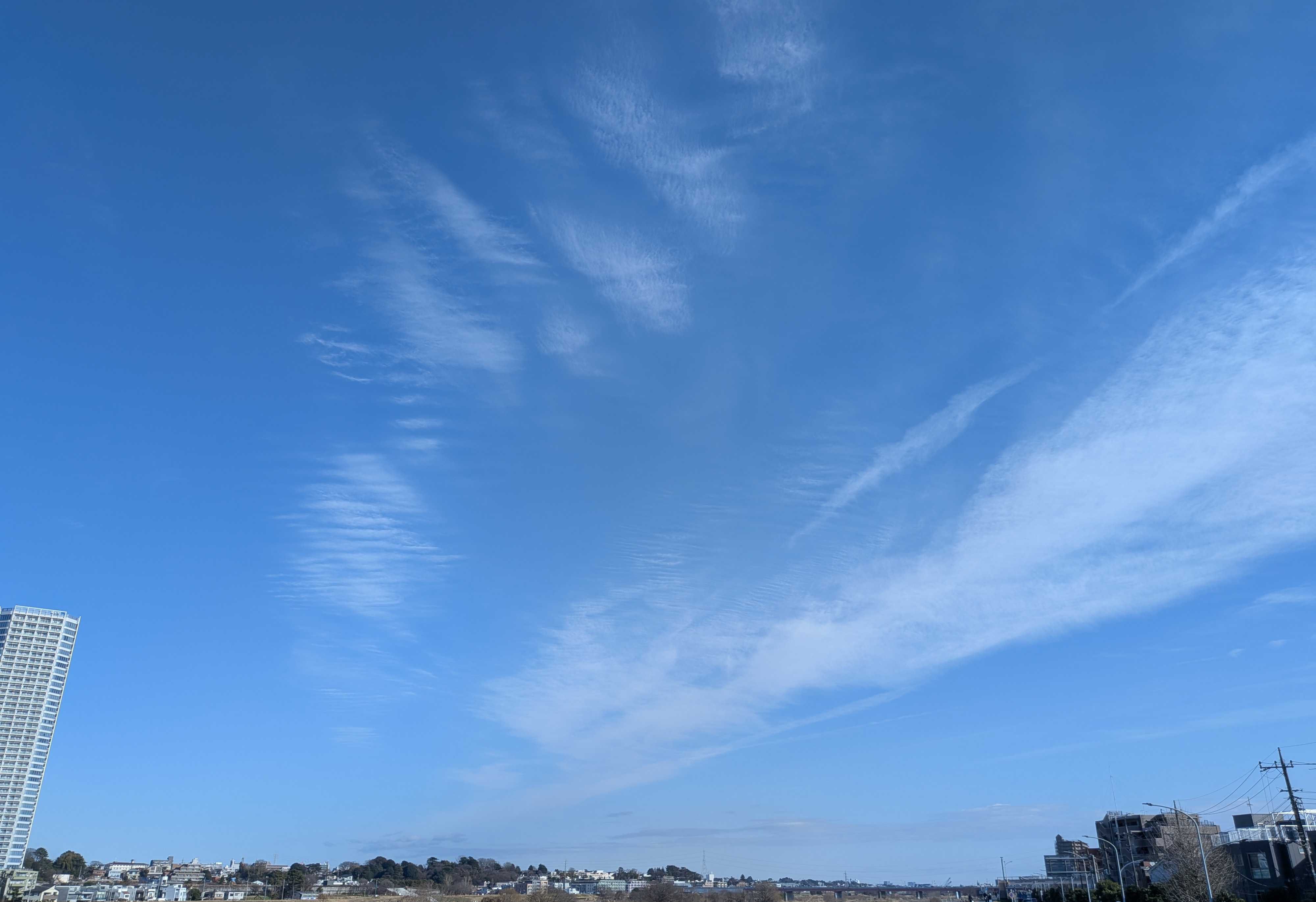 多摩川サイクリングロードに行ったら飛行機雲を沢山見れた