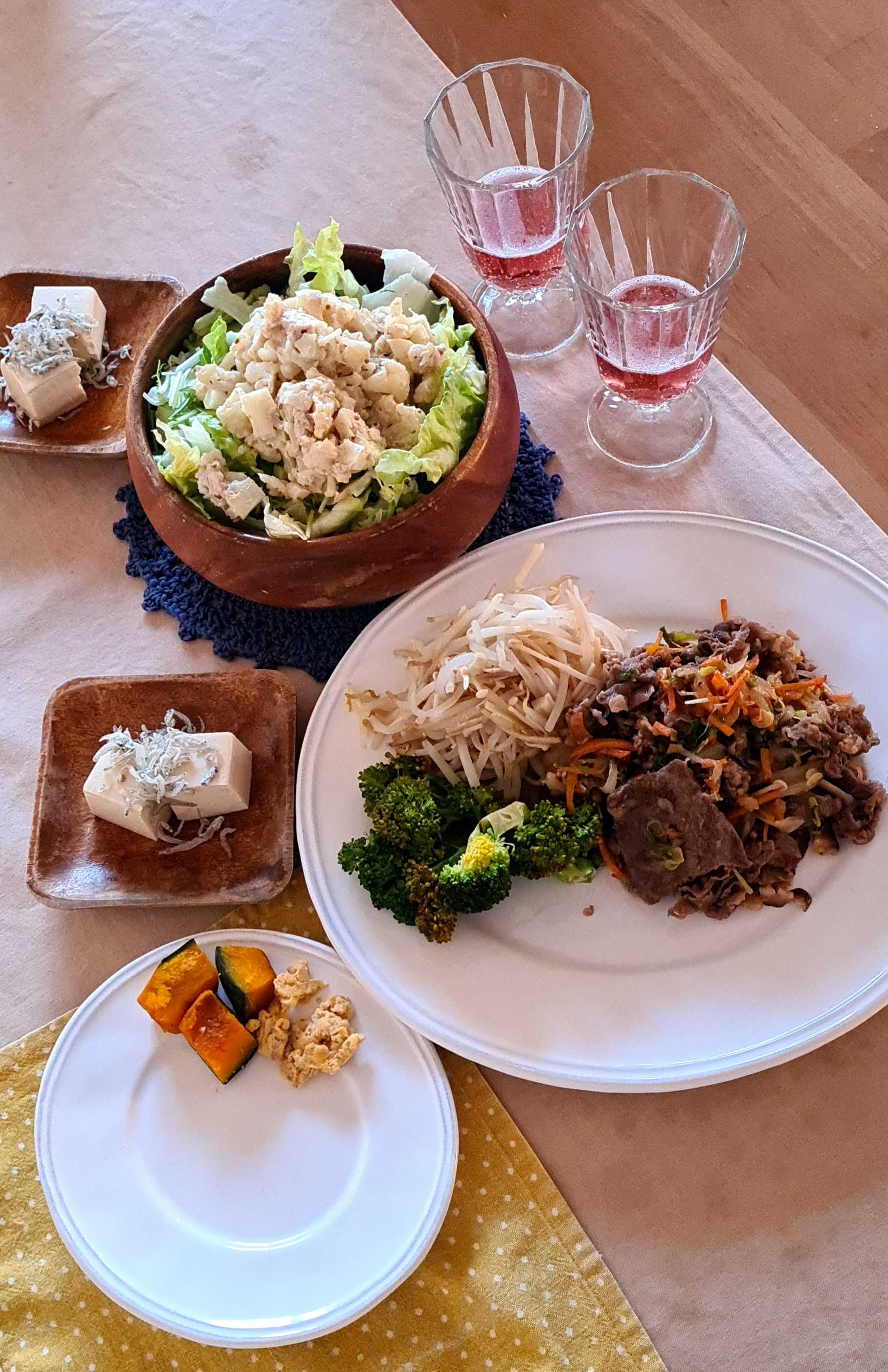 夕食は、串カツ、牡蠣フライ・タルタルソース、…