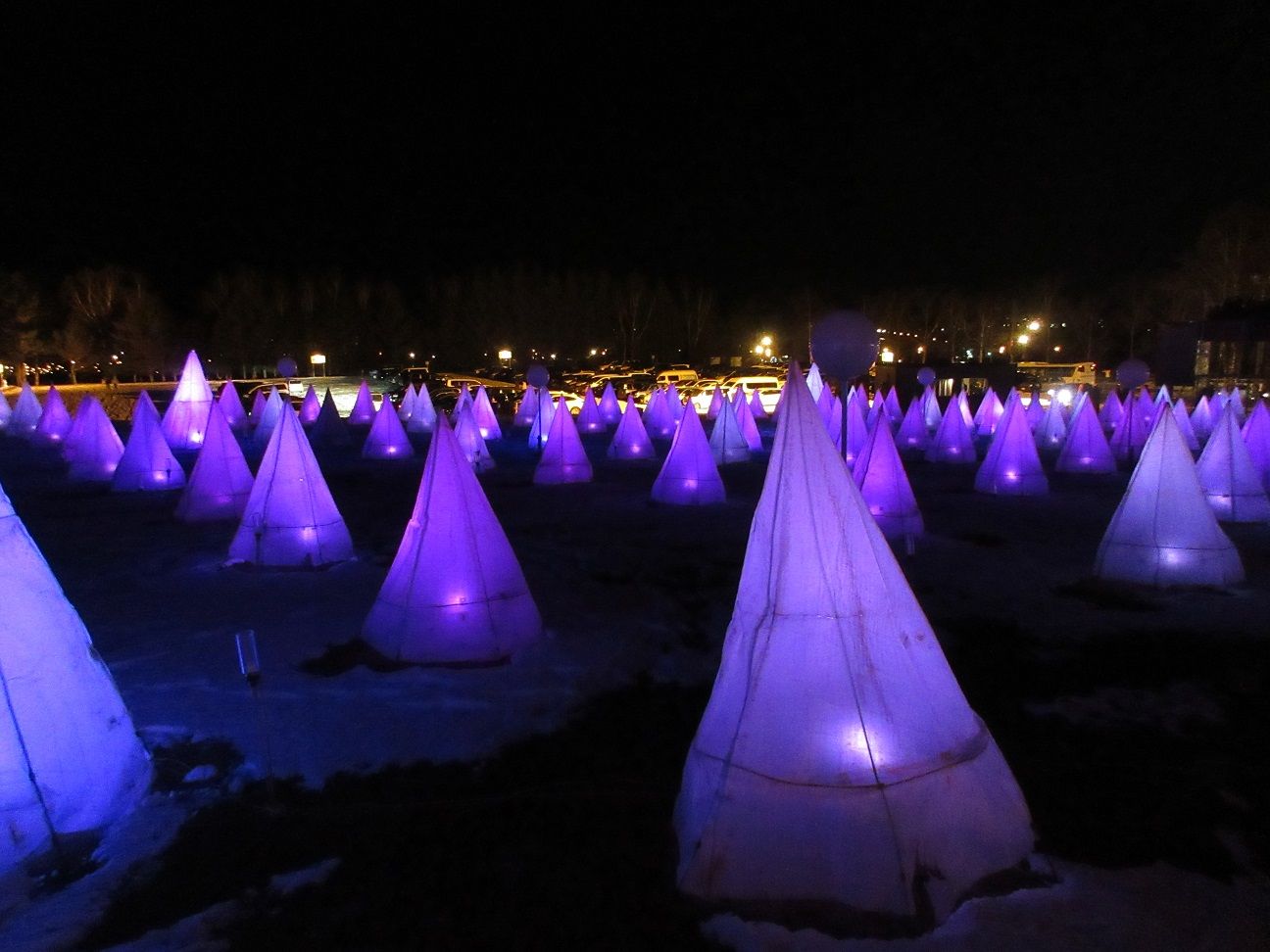 冬の十勝平野に現れる、一面の光のオブジェ(笑) ちなみに、左上は花時計・ハナックです♪