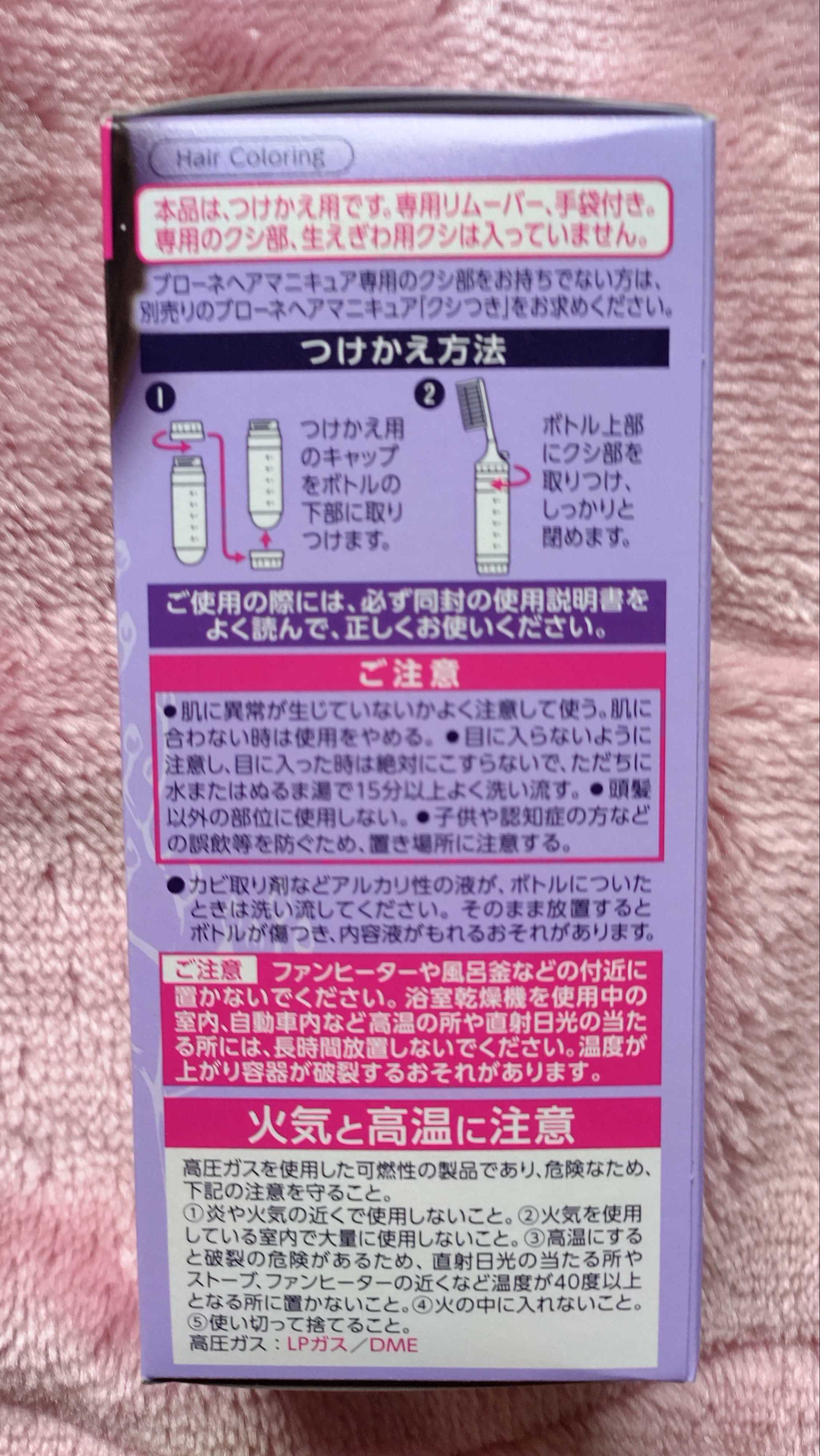 ヘアマニュキアなので、しっかり染まるというより、隠す感じになります。マニュキアが肌につくと、肌も染まるので付属の薬品で取りますが、肌の弱い方はこすりすぎないように注意が必要です。