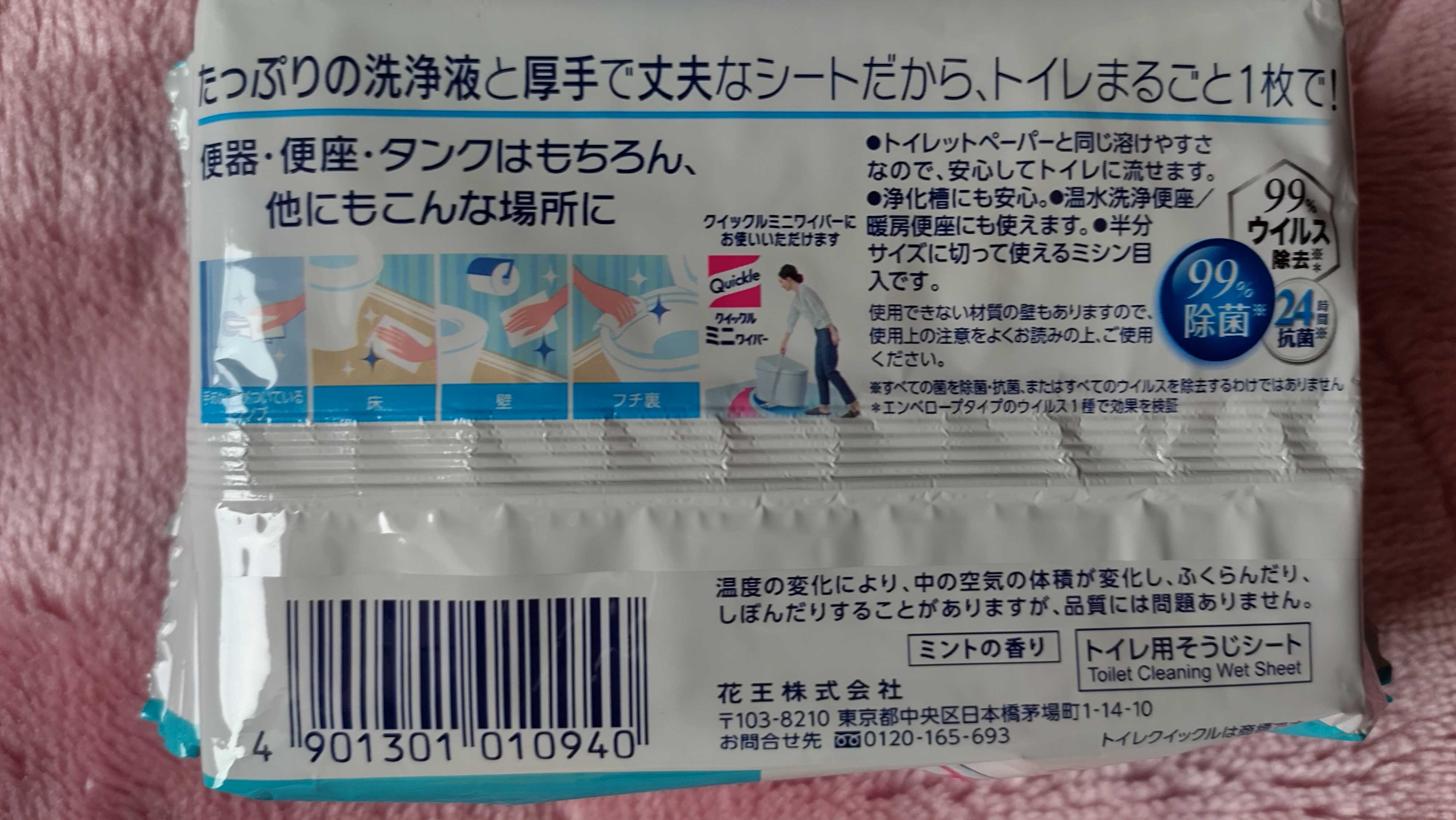 いつもトイレを綺麗にしていたいですが、結構暑い日が続いているので、時短で掃除をしないといけません。トイレクイックルは一枚が大きく掃除をしやすいので助かります。