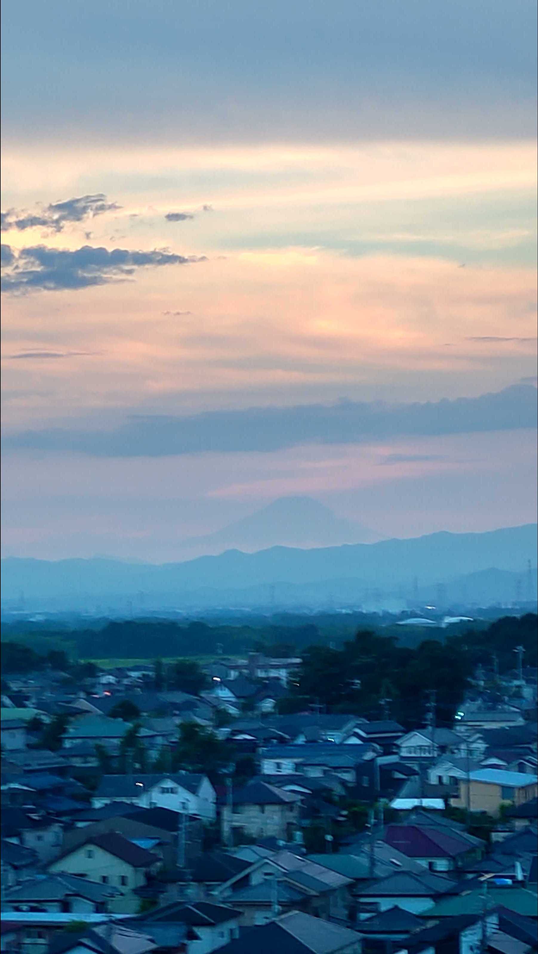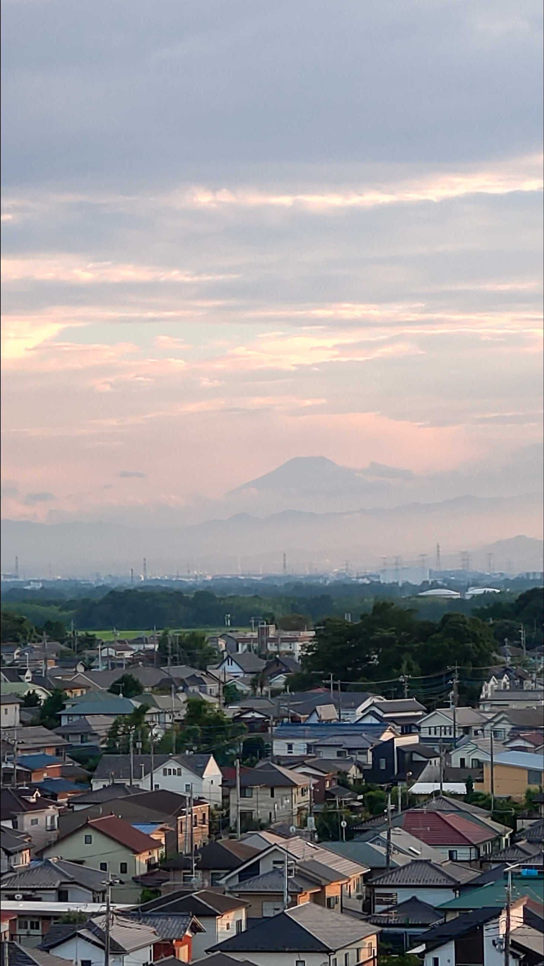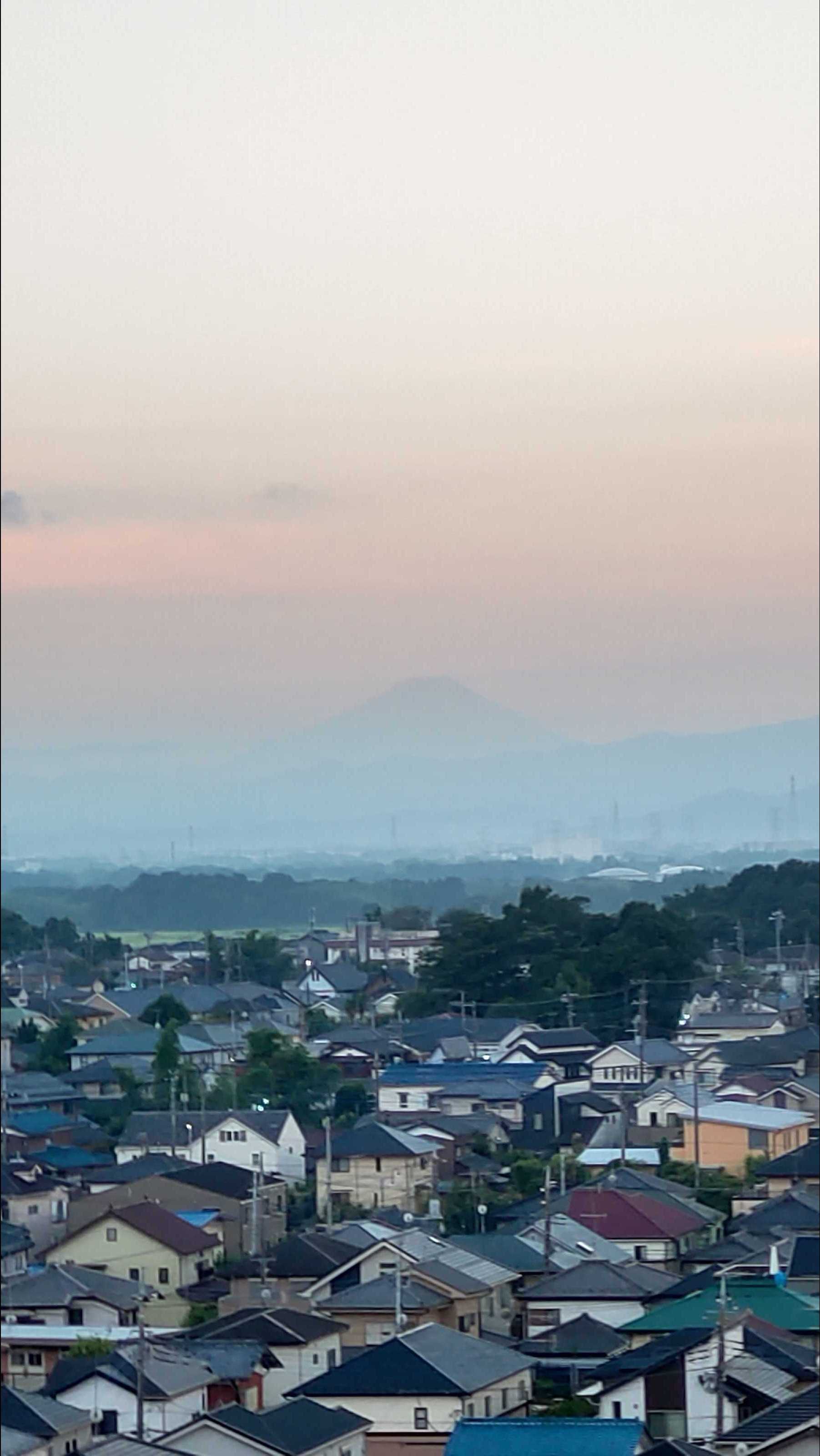 今日も夕方になり、うっすら🗻が顔を出してくれました。