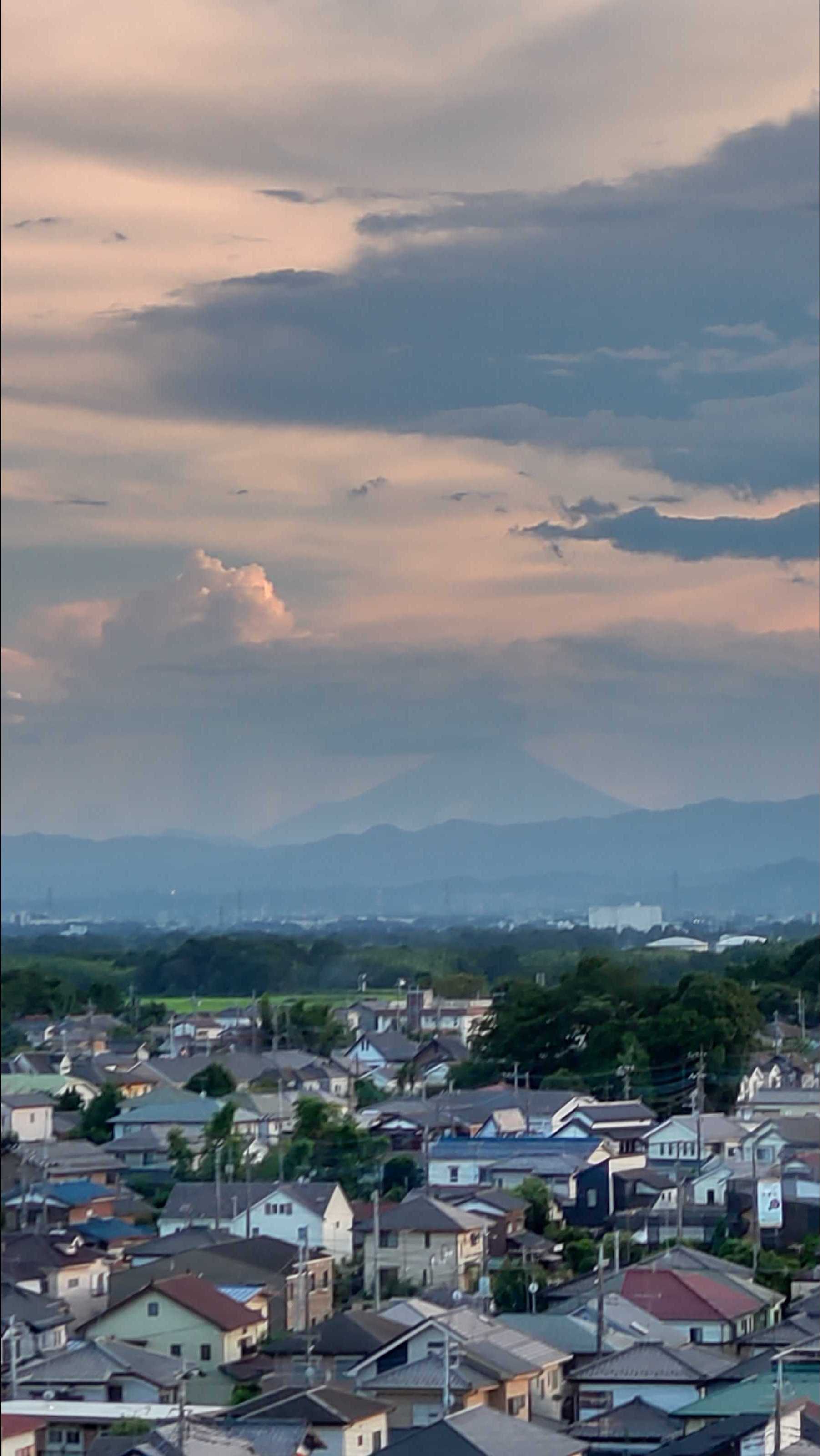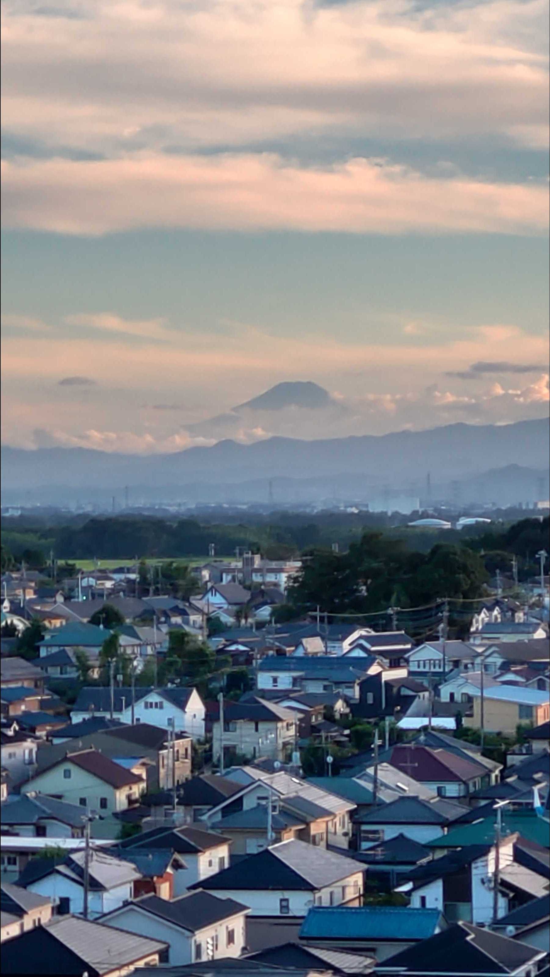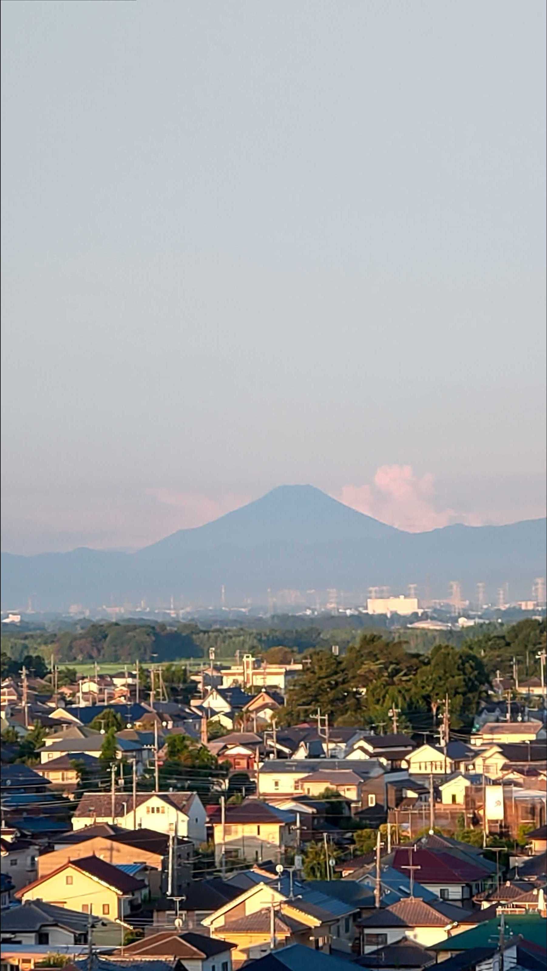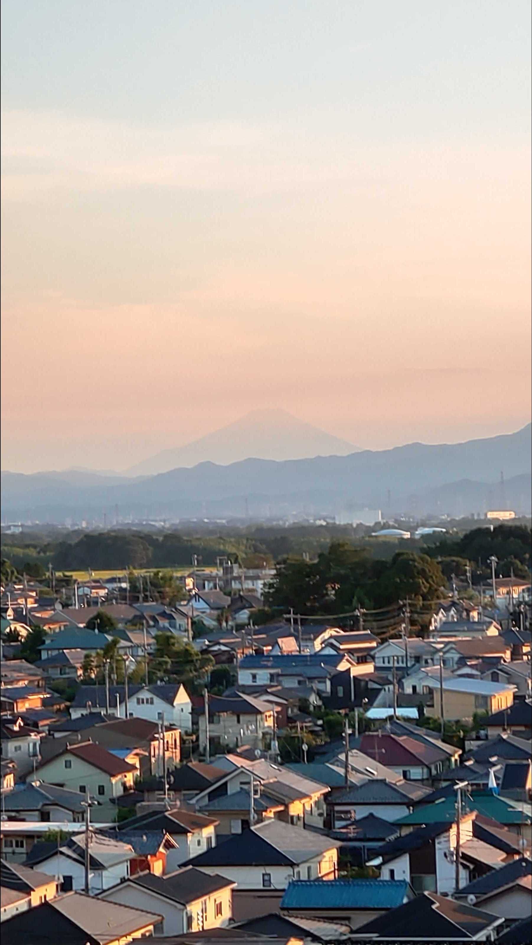 今日も夕方になり、うっすら🗻が顔を出してくれました。