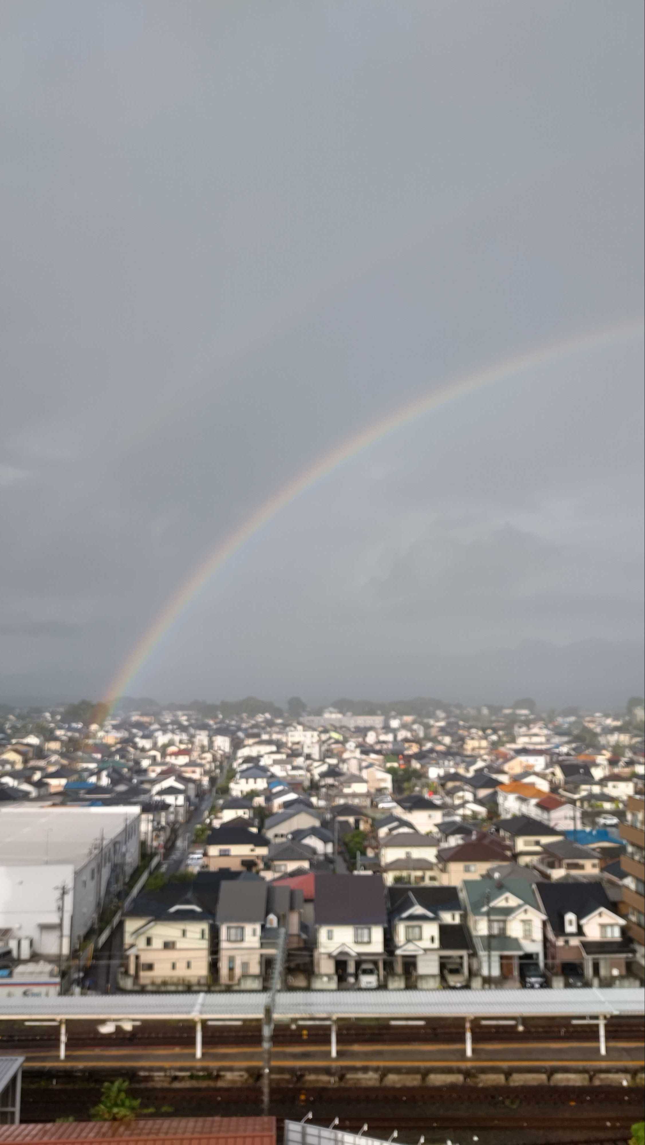 今雨が降っているので🗻の方を見たら🗻でははなく、🌈が見えました。