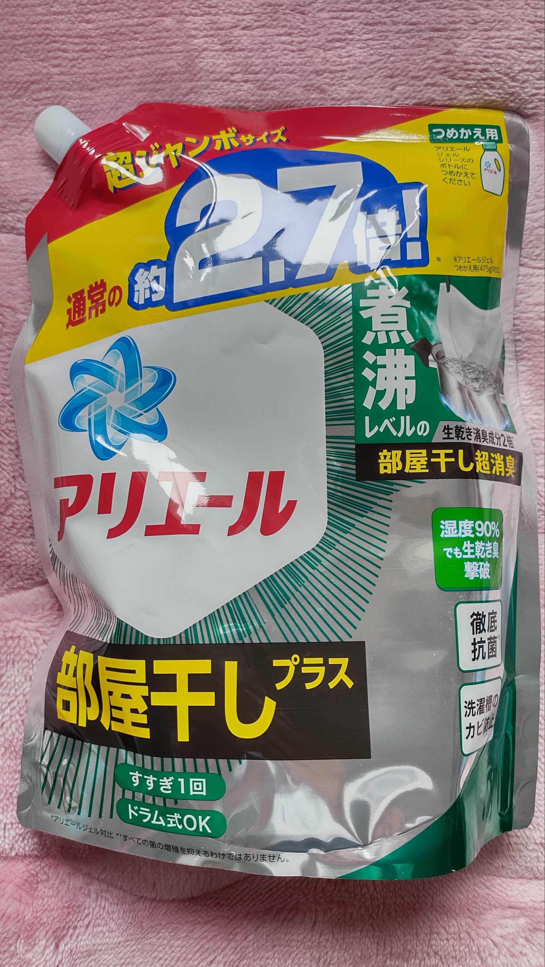 アリエール商品はまとめ買いのセットが多いのですが、単品でも買えるようにしてもらうとありがたいです。猛暑の中では外に干すとすぐ乾くのですが、洗濯物が日焼けするので白いものは加湿効果を兼ねて、エアコンを効かせた室内干しにしています。