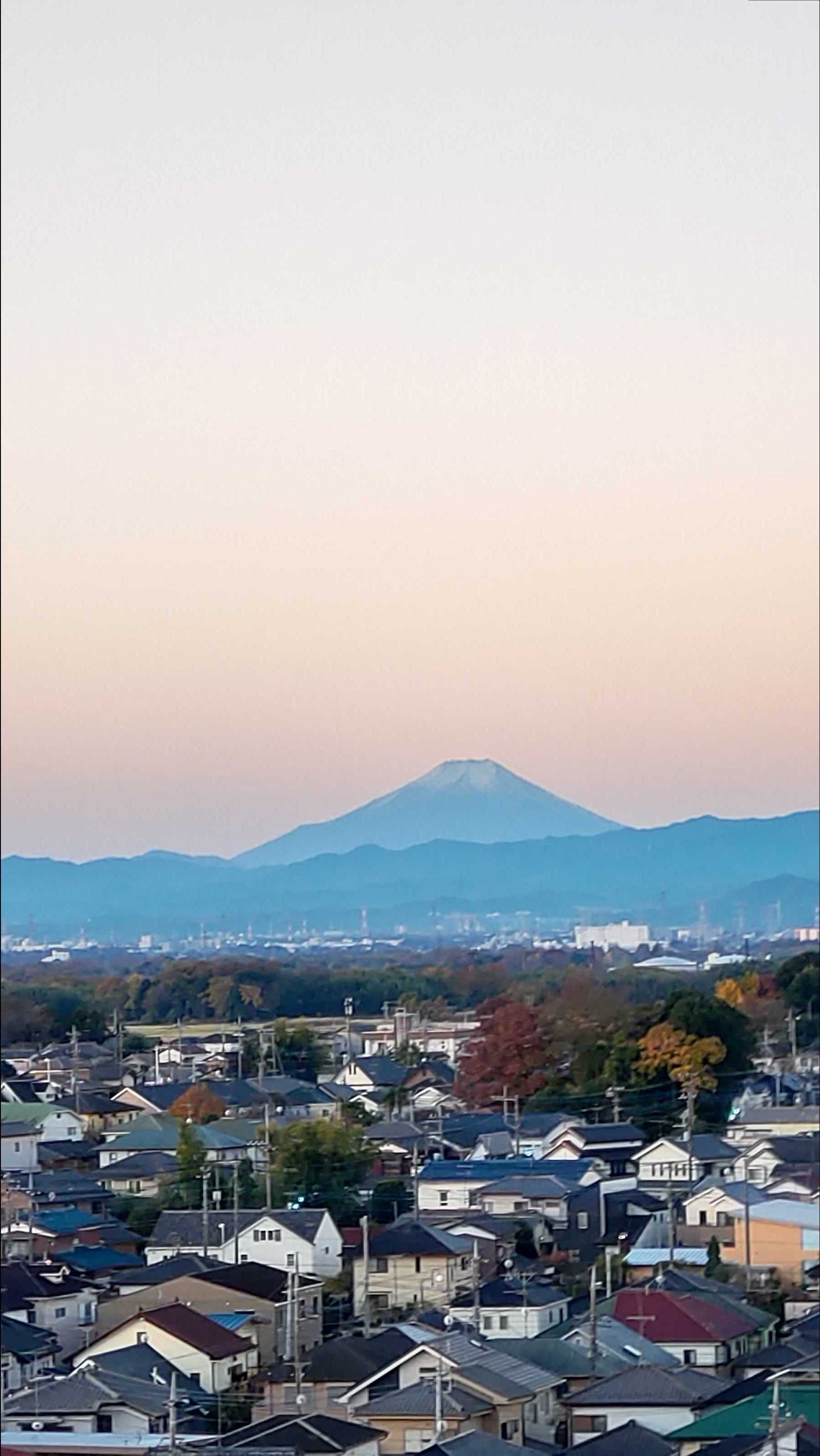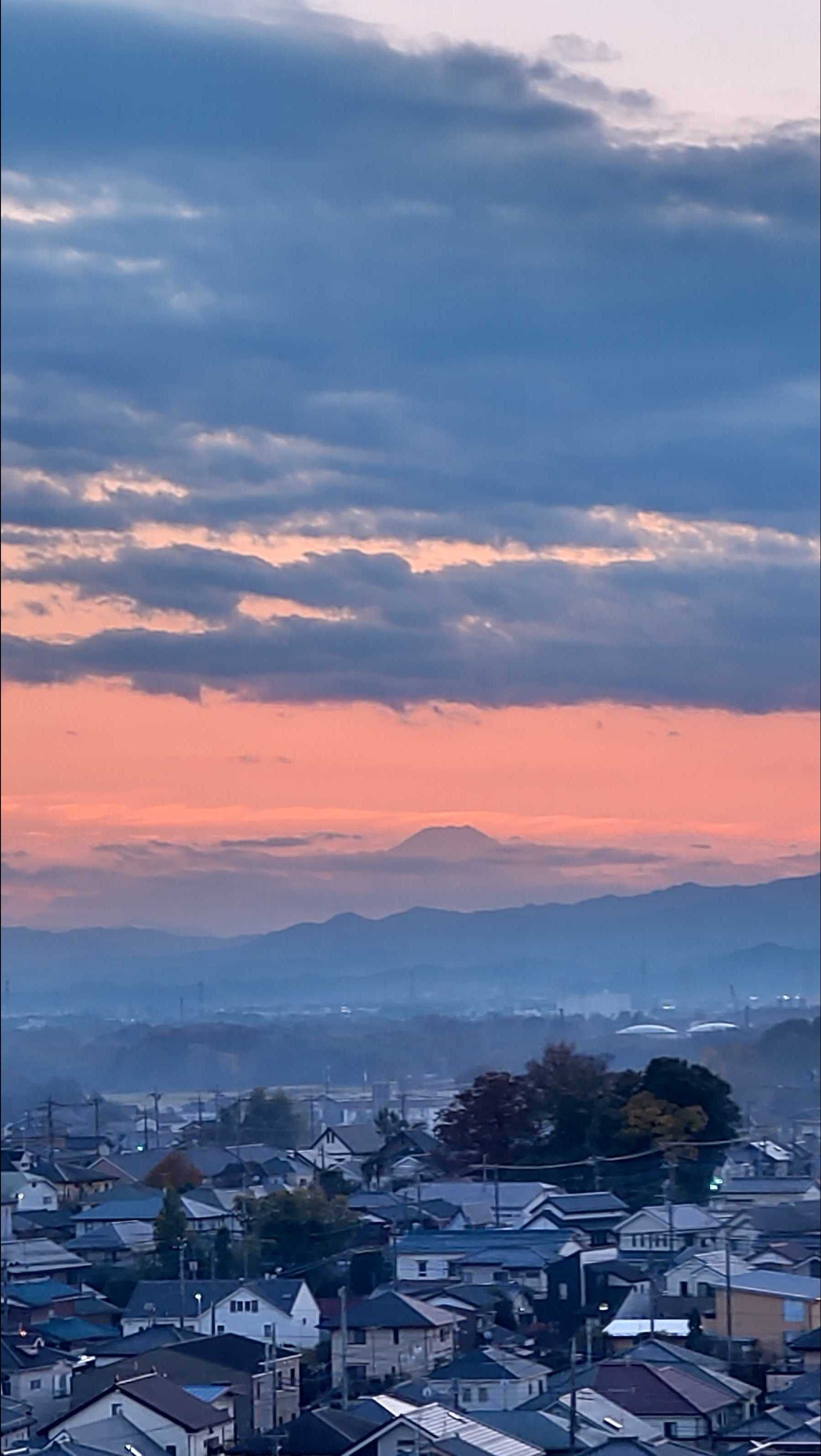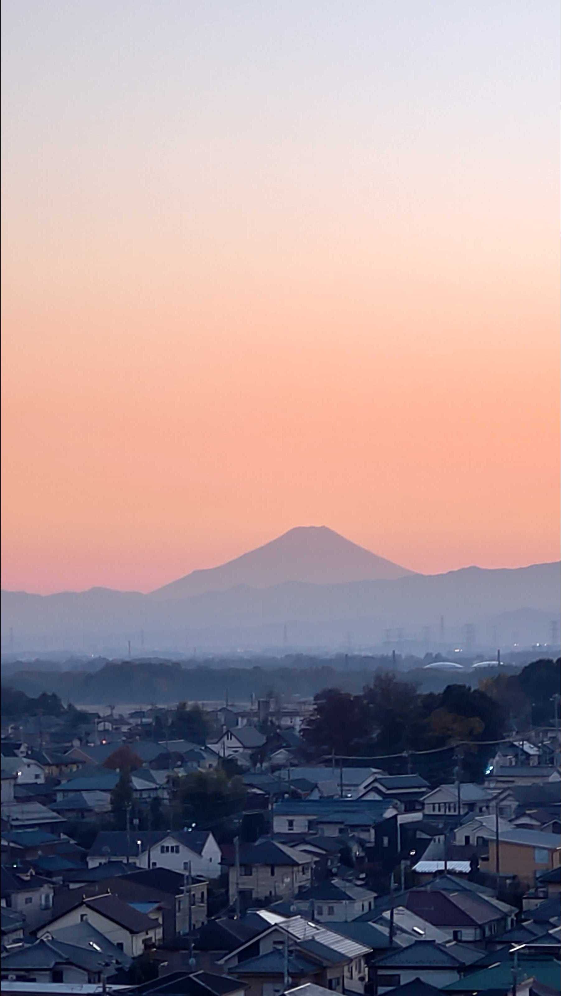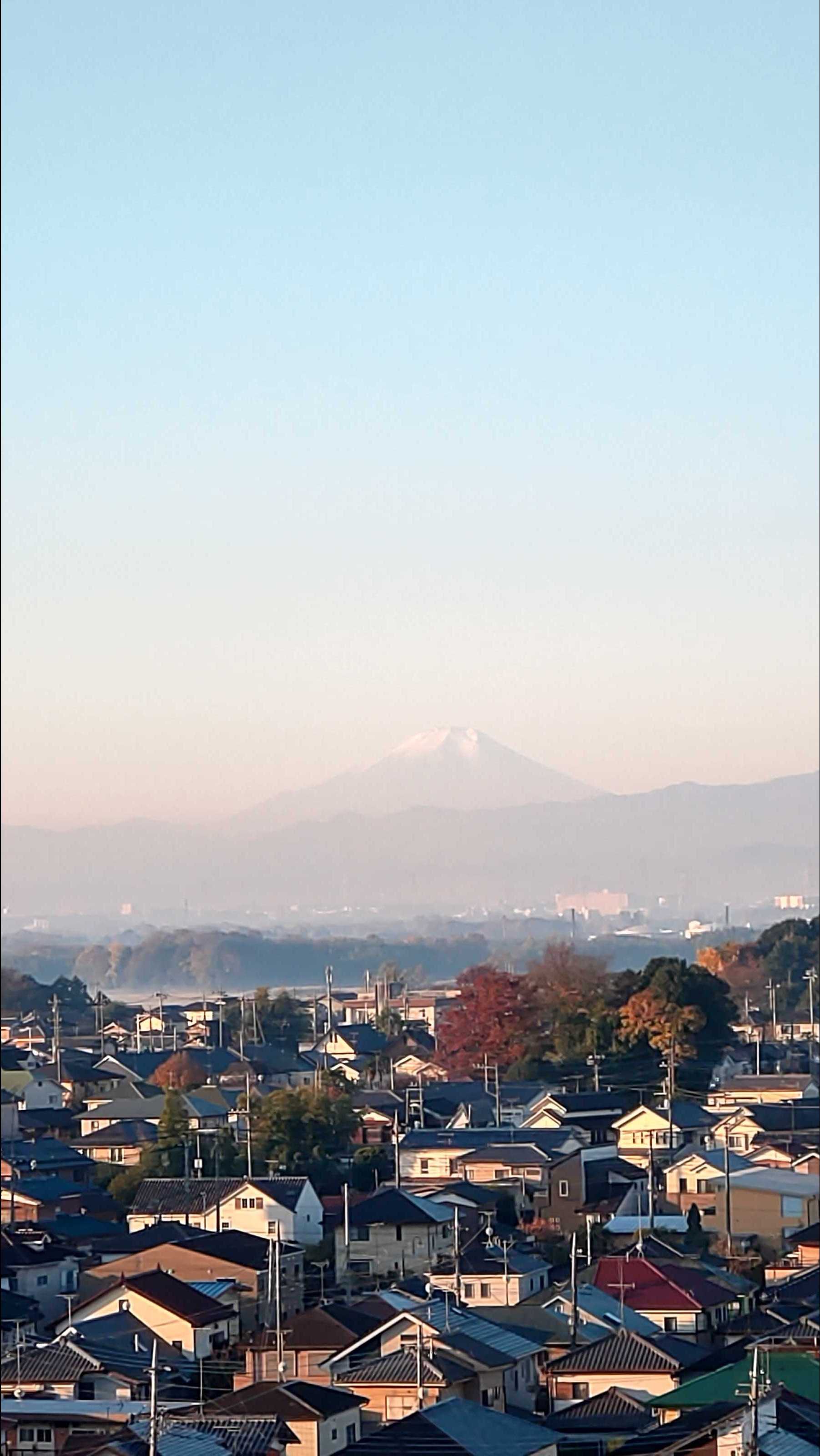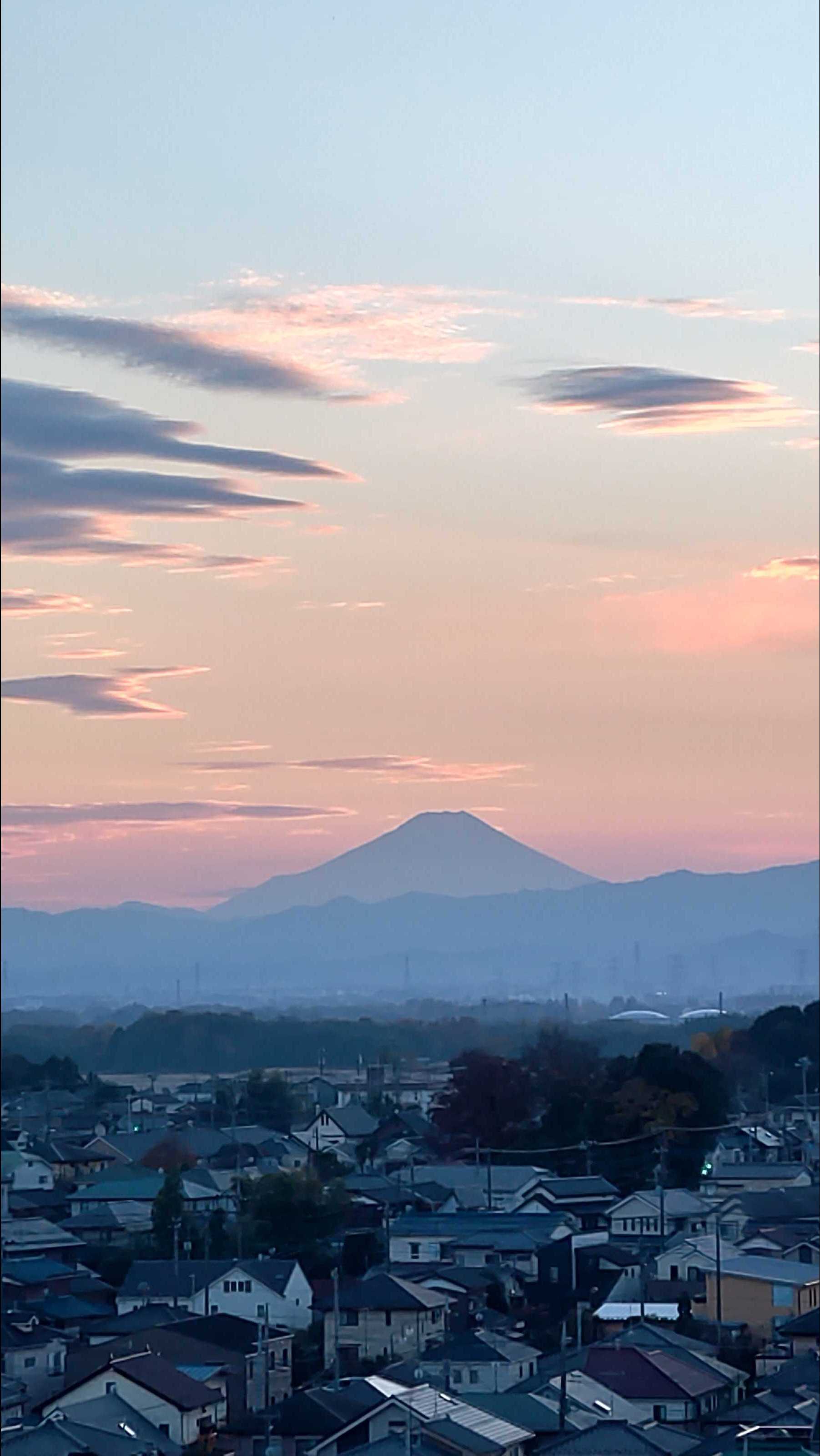 おはようございます。今朝の最低気温は2℃近くまで下がりました。北西の微風もあり、真冬の朝になりました。朝から晴れていますが🗻方面には雲が出ています。日本海側の山間部には雪が降っていますのでもう真冬の様相です。日中の気温も15℃には届かないようです。どうぞ暖かくしてお過ごしください。6:32 🗻は雲に隠れています7:04 裾野が見えてきました7:29 かなり見えてきました8:00 全容が見えてきました8:31