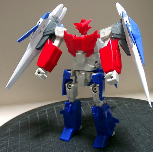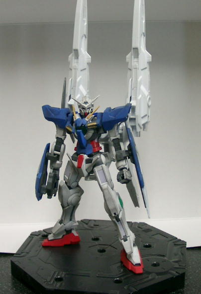 ダブルオーライザー☆俺がガンダムだ。てなワケで完成しましたダブルオーライザー。・・・素組ですけどorzちゃんとスミ入れしてグレー塗って仕上げにGN粒子吹きたい・・・けどエアブラシ用意すると時間が・・orz・・どうでもいいけどオーライザーって沙慈くんの死亡フラグのよーな気がして(ry)カツ(Gディフェンサー)がカブるとゆーか(ry)