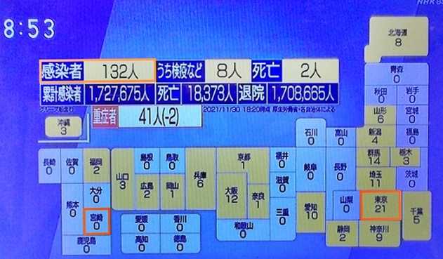 2054,きょうのコロナ新規感染者全国、本県きょうも0人だった(NHKGNEWS)