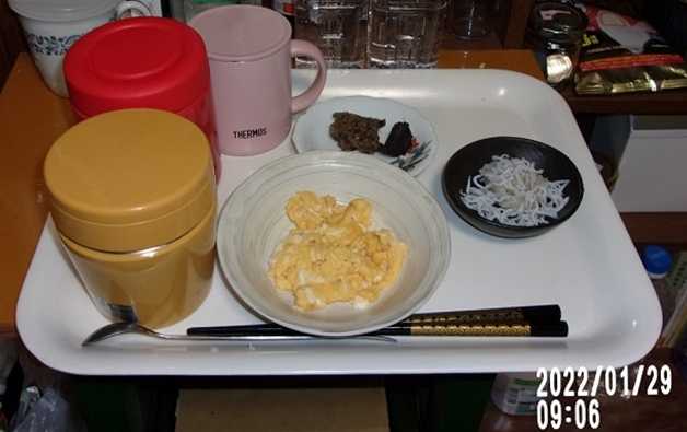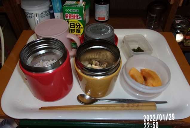 2245,バンメシ、発芽米粥、牛肉煮込み、柿、味噌練り