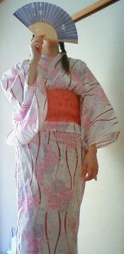 5月2日病院へ。5月4日急に思い立った襦袢作りの為の 絹の手縫い糸 を買いに2駅先の大手スーパーへ。いじょう。 あ、5月6日 焼き肉屋さんへも行きました。そうでした。これ以外は一切外にでてません ( ̄ー ̄; 昨日UPしたぐちゃぐちゃお太鼓写真は4日にスーパーに行った後、撮りました。5月4日の適当着付け写真がこちら↓。半襟もついてない襦袢だったので、外出前に大急ぎで家にあった手ぬぐいを縫いつけました。よく見えませんが水色です。この着姿で外出なんて大胆だったかしらん。「お団子屋のコスプレかっ!!」と夫談。前 後 なにが私的に大胆かっていうと以下。・30代で真っ赤な着物ってアリ?・母親の昔の着物(ウール)&揃いの襦袢(モスリン)ですが、裄が短い&身丈も短い →誤魔化しの為の「常に腕曲げ」にも限界があった&対丈で着用 …おはしょりなしで外出ってアリ?・半幅の結び方がリボン結びの変形 →のハズが途中でわからなくなったので、適当に結わきましたがこれってアリ?(たぶんこれはアリ)写真に撮ってやっと気づきましたが、右前をひっぱり過ぎてんのかなぁ。斜めだな~と反省しても、外出した後なんで今更言ってもしょうがないんですけどね。でも昨日、「ズボンをずり下げてパンツを見せる」どころか「お尻の下までズボンを下げて、トランクス(灰色・チェック模様)を見せる」着こなしをしている高校生(男子)を見たら、私の着ている適当着物はアリだなと思いました。