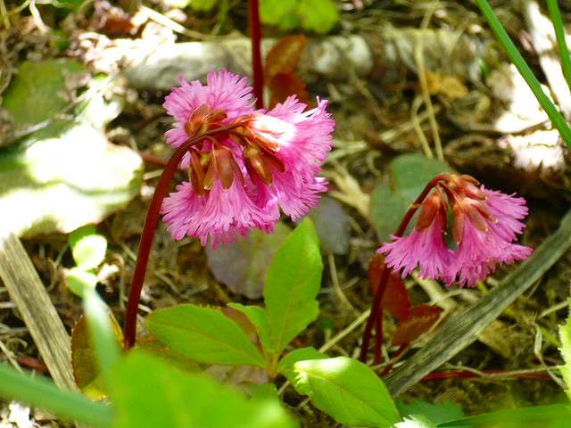 栂池第一ゴンドラを 降りたところに 栂の森遊歩道で 多く見られた。第二ゴンドラは さらに 高所なので残雪が多く まだ 花の 種類が少ない。6月17日 栂の森 イワカガミミツバオウレン ザゼンソウ