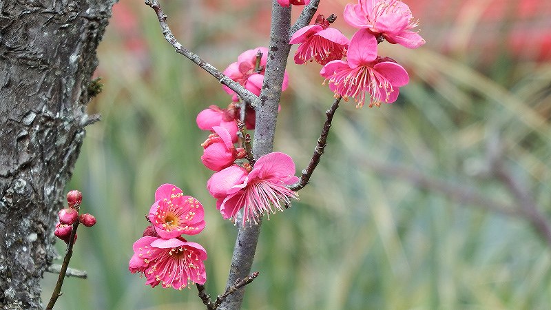 紅梅セツブンソウ玉蕚枝垂れ蠟梅バイカオウレン
