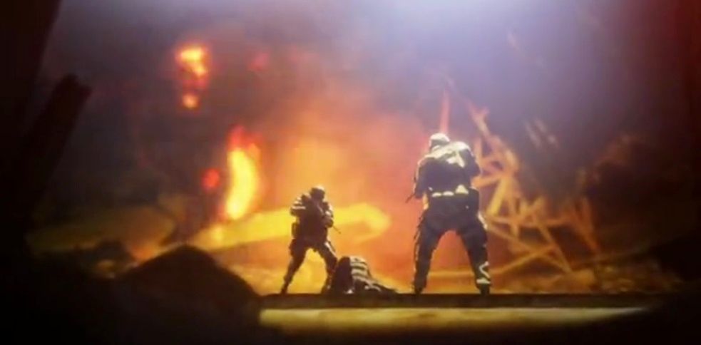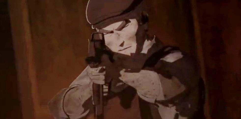 上から銃弾が降ってきた。倒れる佐藤。