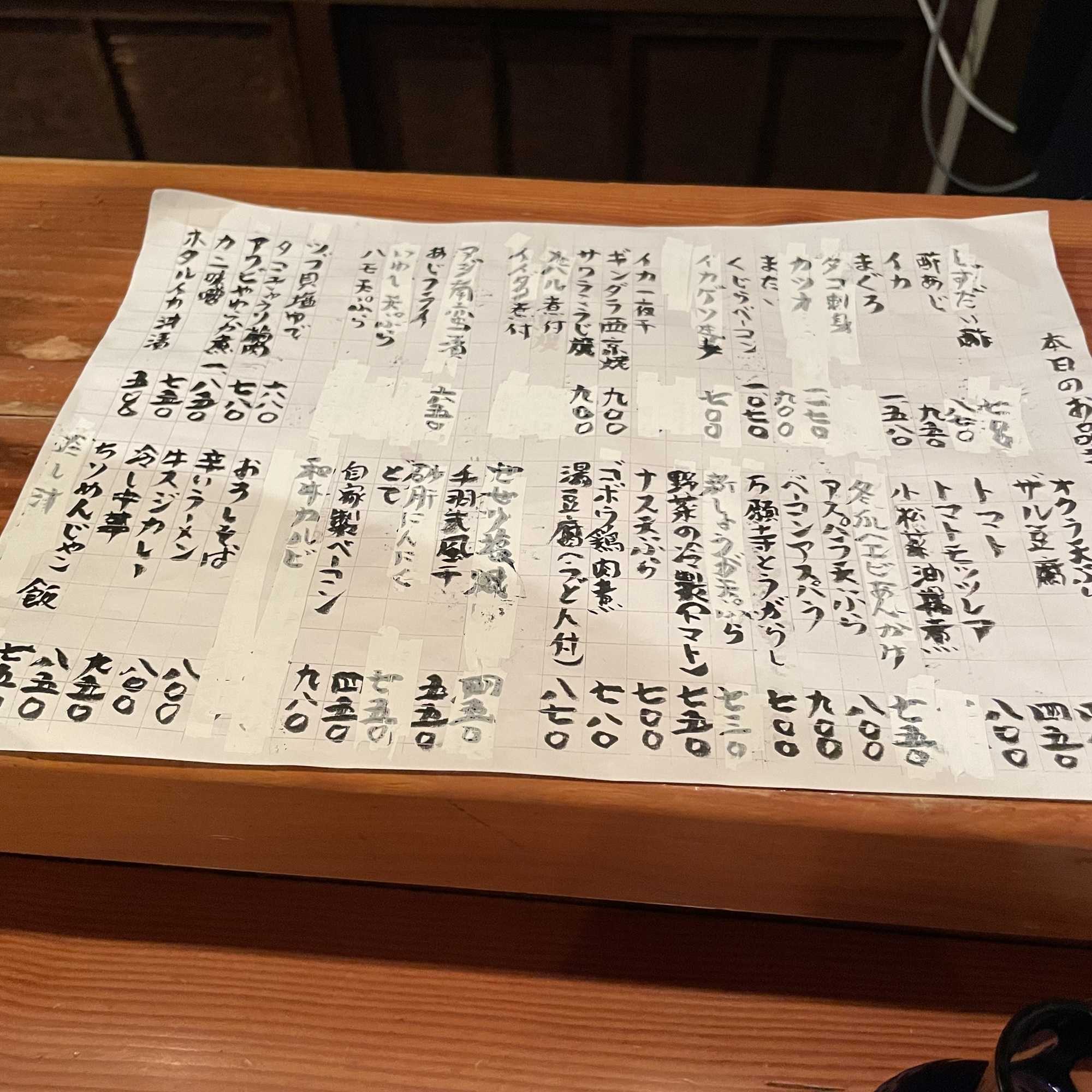 豊橋市にあるお店です。「Sherlock」で美味しいビールを頂いている時に、マスターに「2軒目で日本酒が飲めるお店でおすすめないですかね?」と尋ねたらこちらをおしえて頂きました。一応電話で空席を確認し、伺いました。繁華街の路地裏にひっそりと、大人の隠れ家的な。店内はカウンター席にテーブル席が2,3卓程度でしょうか。こじんまりとした小料理といった雰囲気です。カウンター席に座りメニューを眺めます。魚と中心とした美味しそうなものが並びます。2軒目ですので軽く頂くことに。旬の秋刀魚がありましたので、刺し盛りで入れてもらうことに。合わせるのは日本酒。種類豊富です。刺身は流石にどれも質がよく旨い。秋刀魚は肝醤油で。日本酒を追加し、刺し盛りをすすめます。他にもいろいろ美味しそうなものがありそうなので、1軒目使いで行きたいなとも思いました。(料理)◆お通し◆炭焼なすおひたし◆刺身盛合わせ(新秋刀魚、南鮪、青鯛、アラ)(飲み物)・山間純米吟醸雄町・ドアラと二兎純米吟醸