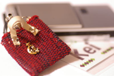 こんばんわ毎日寒い日が続いています。昨日、ブログでお付き合いのあるKeiさんから裂き織りの携帯ストラップをいただきました。すごいんです。細かくて、今まで私が「裂き織りです」って言っていたのが恥ずかしいくらいなんです。Keiさんは裂き織りを職業になさっているので私にとっては憧れの方です。今回初めて本物を見せていただいて、唸っちゃいました・・・・・私もこういうものを将来織りたいって痛切に思いました。卓上織り機だとこの細かさは真似できない・・・・でも、幸い私の織り機(アッシュフォード)も80羽というそうこうがあるので、いつかは真似したいです・・・・・・(いつかは・・・未定)次回Keiさんがイベントに参加されるときはぜひ他の作品も見せていただきたいと思っています。Keiさん、ありがとうございました。