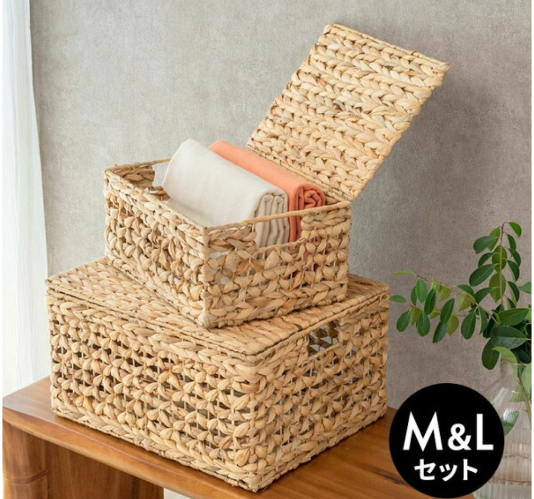 🔹#バスケット🔹▶丈夫なヒヤシンスをお花のように 可愛らしく編んだデザイン♫#yusukeインテリアコレクション かご バスケット ウォーターヒヤシンス M L 2個セット ふた付き 約 W 43cm D 35cm H 23cm カゴ 収納バスケット 収納ボックス 荷物 おもちゃ 雑貨 衣類 収納 入れ ケース ハンドル 持ち手 付き おしゃれ 北欧 リゾート ナチュラル 西海岸風 塩系 男前 [set-51278-51279]ショップ#生活雑貨のネットショップELEMENTS#ランドリー #旅行に便利 #生活雑貨 #ママに優しい商品詳細はこちらへ←楽天ROOM
