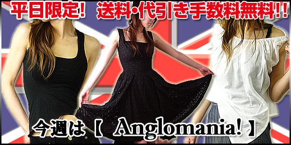 皆さん、今日もお疲れ様です。先週末私はあるイベントに参加してきました。そこであびる優さんとキムタクの弟さんにお会いしました。話には聞いてましたが、キムタクと弟さんは全く似ていませんでした。どちらかと言うと格闘家に近い体つきでした。しかし、性格は気さくなで良い方でした。あびる優さんはテレビで観たままの印象でした。元気があるというか、勢いがすごいので会場でも何かと目だっておられました。あの勢いは是非見習いたいものです。笑さて今週も平日企画を含めた企画がスタートしております。是非お立ち寄り下さいね。今週は大人気のアングロマニア☆
