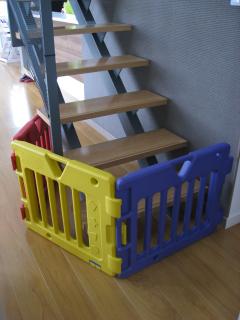 現在階段下はこんな感じでガードしてますですが簡単に動かせるのでPさんには通用しなくなりましたこの階段だと2段目にガードするしかないのかなーと思いつつも階段下りた正面にガラスがあるので心配です。。 何か良い方法ないでしょうか?? 良いガード情報あればメッセージお願いしますm(_ _)m 階段上はシンプルなこれにしようと思いましたが 『コワイよー』の部分が気持ち悪いので これにしました こちらもコワイです(byよだれ風船)