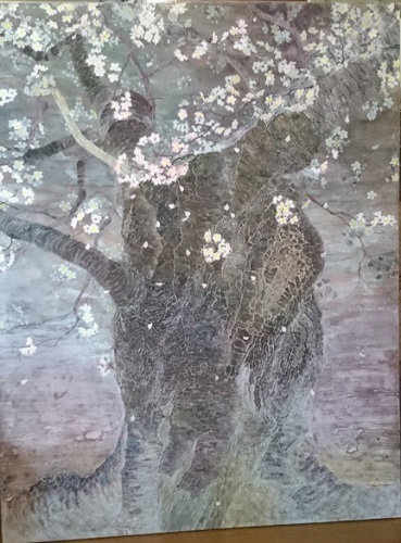 はがき50枚分の大きさ 芸展に昨日出品しました。今日審査 運がよければあさって新聞(地方新聞)に載るかも久しぶりに桜描いてみました。今年の春近くの公園へ行ったとき いいモデルさんがいました。やっぱり桜いいな~