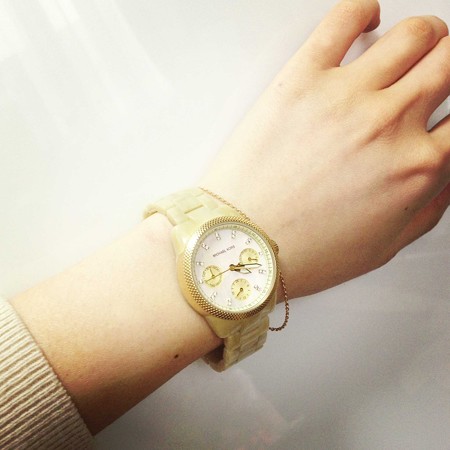 こんにちはお昼くらいは汗ばむほど暑かったのにすっかり曇り空で寒くなってきました(@関東)今日は時間があったのでちょこっと横浜ルミネあたりを見てきましたみんな春のアウターを探してるって雰囲気でしたよ~jamoもって思ったけど混みあってて珍しく負けてサッサと退散wさて、話しは変わりますが腕時計買いましたMICHAEL KORSの時計にしましたこれはたまたまヒカリエでぼんやりウインドーショッピングしてた時に目にとまったもの後日試着もしてみて考え中で、楽天でも売ってるのが安くなってたから買っちゃったこちらのアクセサリーギフトのTYS様で購入MK5400の方です。このほかにもう少しフェイスが大きいものもあります。あえて大きいフェイスもカジュアルで良いかもだけど…普段使いに主張しすぎないサイズにしましたつけた感じ時計屋さんでコマ詰め&電池入れてきました(1500円でした)アップフェイスはシェルで全体に黄色目ベージュなので肌なじみも良いですこのお店の梱包はしっかりしてて好感もてましたタオルケーキのおまけもあったり他のお店の同じタイプ約33mm MK5039少し大きめタイプも貼っておきますね約36mmMK5217もっと大きめなフェイスのものよくみるとデザインがちょっと違います約43mm色味もかわいくて春にぴったりです悩んだけど結局買ってよかったですよおすすめですランキング応援お願いしますいつもポチっとクリックありがと 励みになります