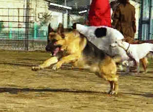 2007年ニッポンWanダフル杯、ヘビー級チャンピオンタイトルマッチ! エルフvsじゅうべえ~ ヾ(≧∇≦*)ゝ携帯の機能でこんな画像が作れたよ。 ママにしては上出来でしょ。 右がじゅうべえのお兄ちゃん犬エルフだよ。 飼い主さんが「外で飼ってるからいつでも見に来て!」って、ママに言ったからパパにうるさい程せがんだのは想像出来るよね。 およそ一年ぶりの再開。 みんなで会いに行ってきたよ。 ママとパパが着いたら、エルフはハウスの中から覗いてるの。 ママが走り寄るとしっぽブンブン振って(→o←)ゞウレションしちゃった。 ママが分かるぅ~?続いて来たパパにもしっぽブンブンだよ。 さあ、ご対面! パパがじゅうべえ連れてきたら、エルフハウスに隠れちゃったよ( ̄□ ̄;)!! しっぽお尻に挟んで、後ろ足ガタガタ震わして・・・ じゅうべえが怖い?そうよね~、箱入り息子で可愛いがってもらってるから突然デカイ犬が来たらビビるよねぇ~。 って、エルフあんたもデカイですからぁ~ヾ(≧∇≦*)ゝ 次第に緊張も取れてお互い柵越しに(^3^)-☆chu!! いいカンジよ。 じゃぁ、そろそろ親子の対面かしら。 しばらく興味深そうにしていた愛、「分かってるのかしら?そうよね~(=^▽^=)、いくらガウガウ愛でもお腹を痛めて産んでおっぱいをやってたんだもんねぇ~」って、しゃべくってた瞬間ガウガウガウ~。 母はツヨし。 チャンピオンは愛ちゃん(*´Д`)=з byママ 〈エマのひとこと〉お母さんや兄弟に会えるなんて幸せだなぁ~ ワタシは知らないワン(//▽//) パパ&ママがいるからべつにいいけどさ。