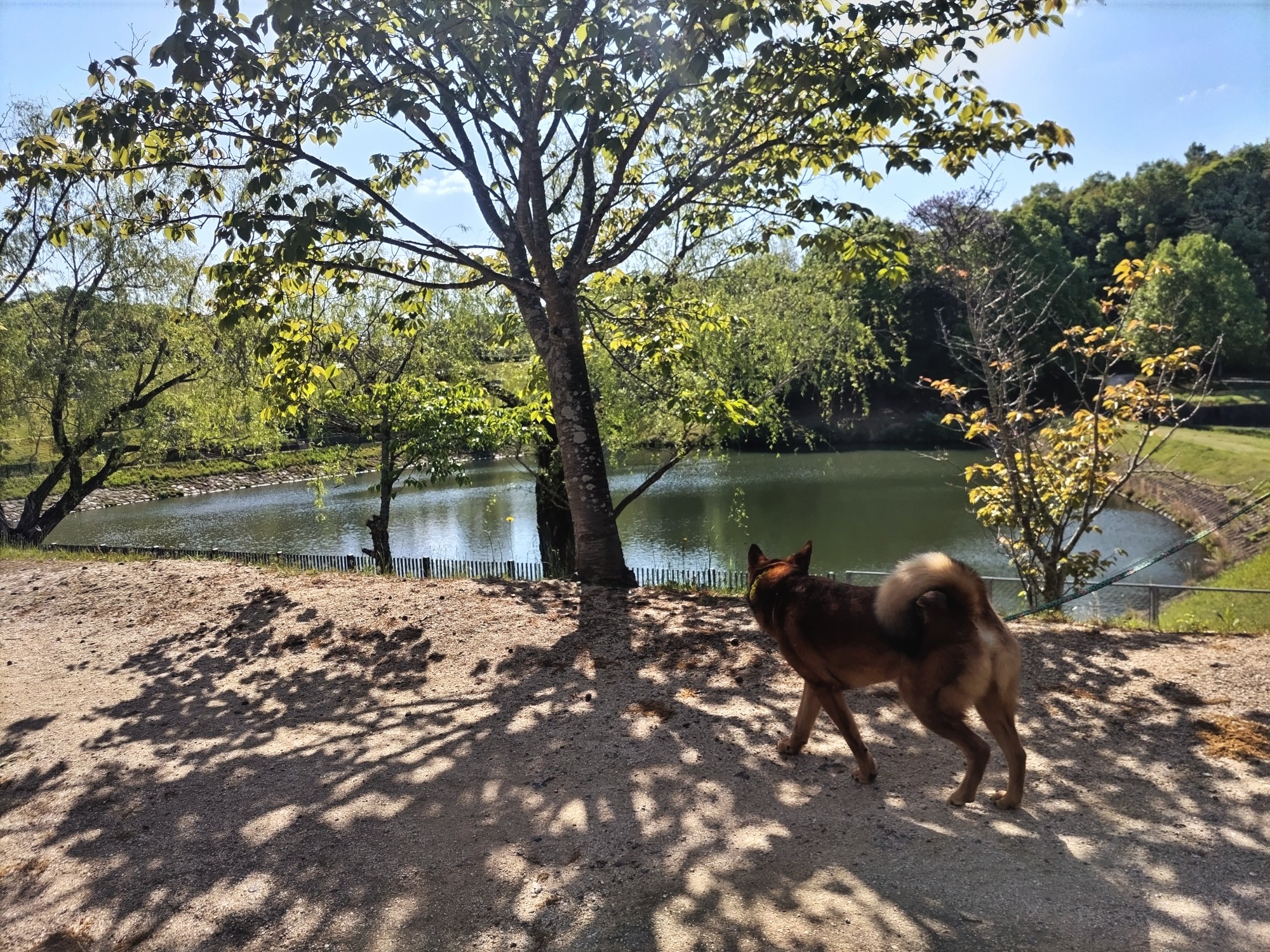 芝生の木陰で待ってるちょこよー。