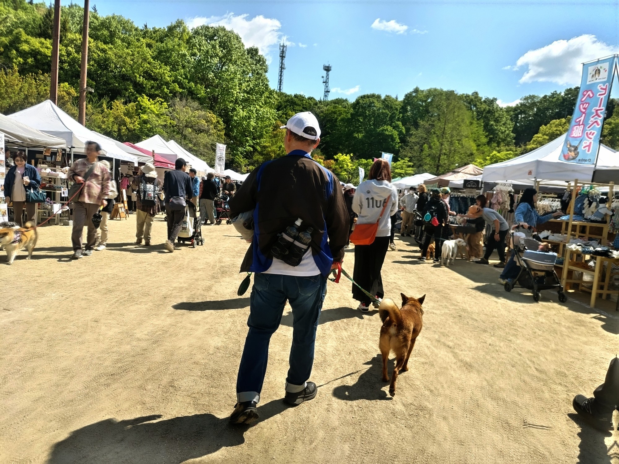 運良く、臨時駐車場に止めることが出来て、「わんこは、カートかスリングか抱っこでお願いします」