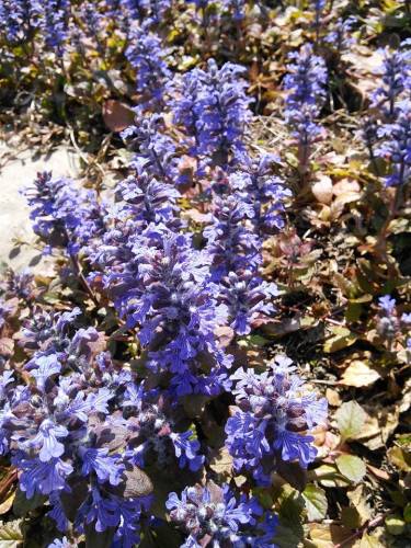 アジュガの花芽があがってきました!ラベンダーのような可愛い花がもうすぐ見られる♪チャイブも美味しそう!花の蕾がついてきたのでそろそろ収穫!レモンタイムも越冬できました~触るとレモンの良い香り~~ホリホックとユーフォロビア 近く植えすぎ・・離したいけど~どうしよ~東側の方・・こちらは午後から日陰お友達に貰ったクリスマスローズとプルモナリアが新しく仲間入りぺパーミント かなり増えましたセントジョーンズワート こぼれ種で増えまくってます無事に越冬できたラムズイヤーとエキナセア(手前)霜にもやられずに元気な新芽を見られて嬉しいわ~リシマキアプンクタータまだまだ小さいルバーブ5月に移植したバラにも新芽が!今週は後半雨の予報ですね!ベランダで寄せ植え&ハンキングしまくります!