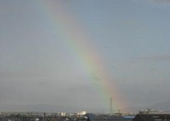 先日、通り雨の後虹を見ましたよ~♪ 一瞬だけ、顔をだしてすぐに消えてしまった虹 短時間にものすごい量の雨でした。 雨上がりの後、窓の外に目をやると虹が‥ わ~い わ~い 虹だ~♪ 随分久しぶりにお目にかかるような 畑も、種まき後が気になるので行ってみると こぼれ種から、スイカが出来てました。 かわいいミニスイカです。 ギャング達の、握りこぶしほどの大きさで 食べれるかな~♪