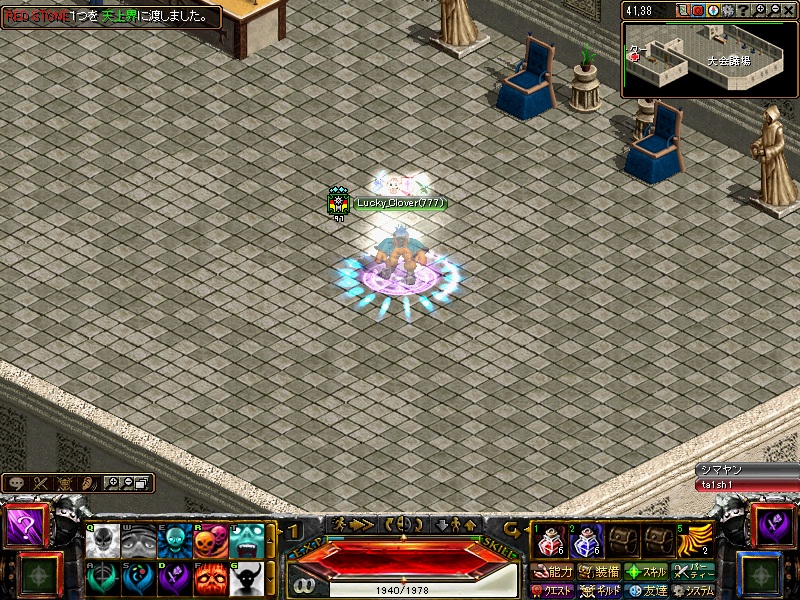 お久しぶりにブログ更新マグナム・オーパス様から次はGTS様にお邪魔させていただきました^-^ギルドできてからまだ新しいらしいですが、知り合いなんかもいていやすいギルド様です!最近は乾いたオアシスで低下でPTに入ってここまでレベル上げましたソロしてもレベル上がらないんでだいぶ辛いです^q^;そんなこんなで2回目の鏡!いつぶりだろうか?w1年ぶりぐらいかな?wバインド悪魔にとっても最終の手だと思うカンニを鏡させてもらいました!ドキドキまぁよくあることさ^^;ただ今年は大学のほうも忙しくなるんで2か月後の鏡が成功しても失敗しても狩りはしばらく休もうと思いますギルセンは出れるとき出よう!いまのうちにレベルあげれるだけあげないとねー~鏡の魔法書~1回目:W速度RSフォムガ ×2回目:W速度回避無視カンニ ×おしまい。