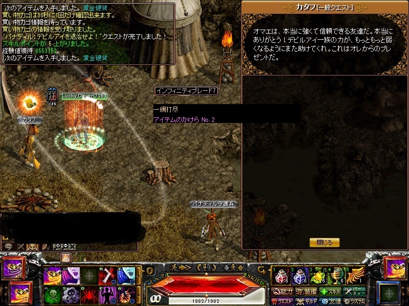 半月更新^-^とりあえず悪魔が700なりました!秘密と毎日クエとGDで大体1日2レベ上がります^w^うまー6月21日 アリーナ戦懲りずにMUSHA×KUSHA_I様と対戦ですいままでの経験などをいかしてバラけないようにしましたが団子の内側から点数を取られていく感じでしたんーくやしーwいずれ勝ちたいですねー6月23日 アリーナ戦こちら参加人数15人多い!だがしかしWIZ1^-^自分はWIZなしPTでしたがソウルガードとコルでなんとか0死w相手スキルレベルの高い霊術さんいたんでスキルはがされまくりーの開幕早々スイッチされて女神反転されてステ下がり腰についてるものばらまいちゃった(テヘッ途中から一気に点数取れてよかったです6月27日 アリーナ戦自分不参加コル逃げがひどかったらしく途中当たってもらえなかったとか?なんとか?6月30日 アリーナ戦前回8000-35000で負けリベンジ成功できてよかったです7月1日 アリーナ戦自分不参加こちら7人?wちゃんと人数集まったときにやりたいです7月4日 アリーナ戦1年前にドラツイでふるぼっこにされたんでリベーンジ!途中までは良かったですがこちら火力2で相手火力8で徐々に差が・・・アチャが痛くて4回死にました;;やっぱHP4万は欲しいなー7月7日 アリーナ戦相手3PTぐらい初衝突時に知識で一気に点数取られその後も各PTごとに散りばり過ぎましたやっぱヒステリは知識に弱いなーって1戦でした対戦ありがとうございました!~おまけ~お前らwwwwwwwwwwwwwwwwwwww人気者はつらいぜ☆おしまい!