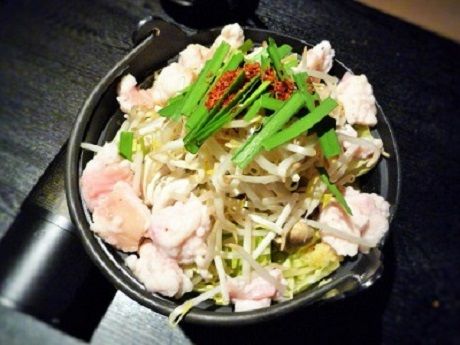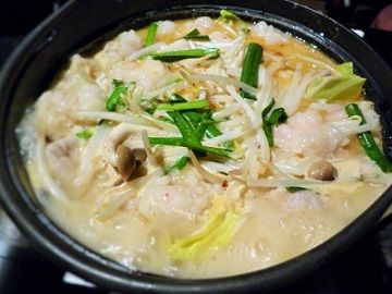 もつ鍋白(とんこつ味のスープ・赤はコチュジャン味でした)。