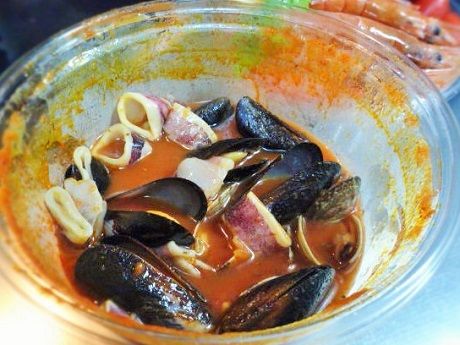 真だら、あさり、ムール貝、ヤリイカが。(たらは下に隠れてます)